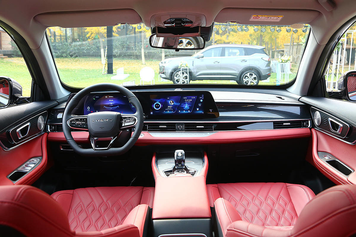 内饰方面,新款瑞虎7 PLUS的环抱式座舱采用了时尚、潮流的内饰设计,同时还采用“木兰红+黑”的撞色风格,中控台、车门内饰板等处均使用了镀铬装饰条加以修饰,从而进一步增加了车辆内部的高级感。