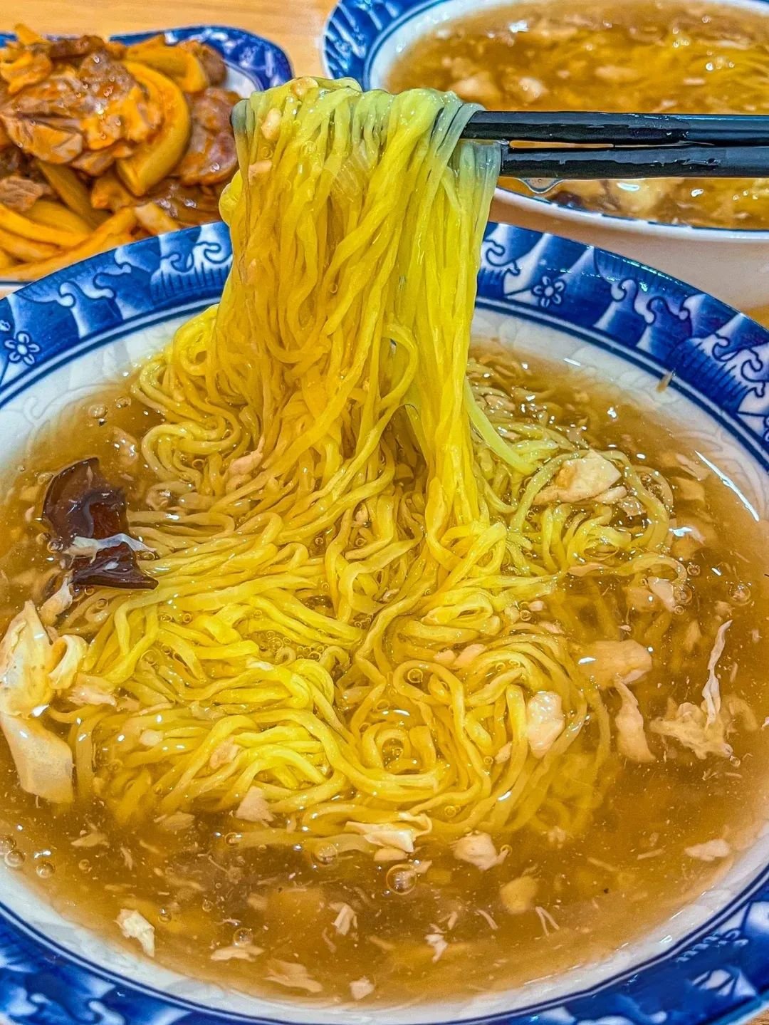 不同的面条,还需要搭配着不同的面卤,通常讲究的是浓汁配粗条,清汁配细条,炸酱配扁条,吃起来面条根根分明,筋道有韧劲,卤味鲜香四溢。