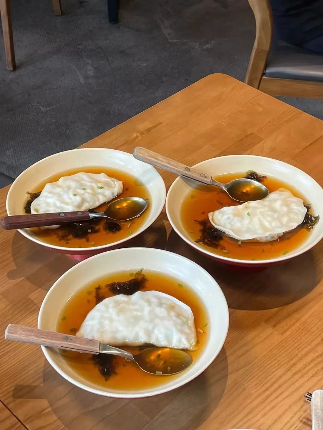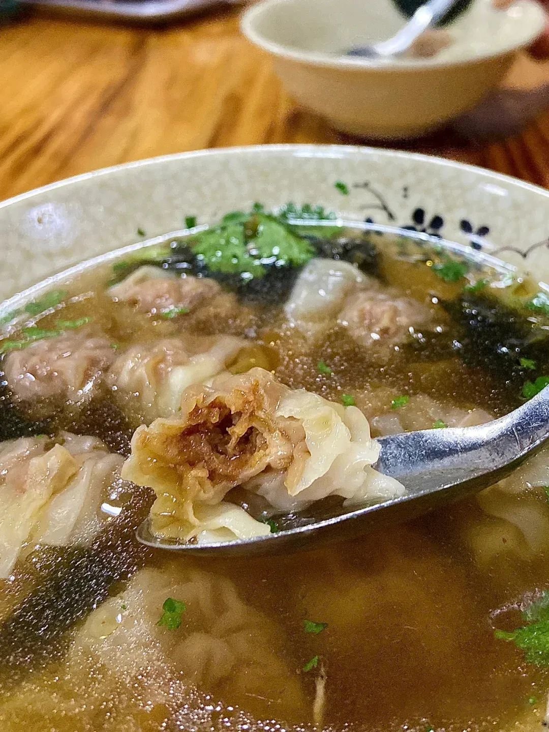 小小的馄饨在碗里滴溜溜地打转,皮子是晶莹剔透的,隐隐透出粉嫩的肉色,肉馅也鲜嫩可口,汤底则不同于南方的高汤底,一般是酱油汤底的。
