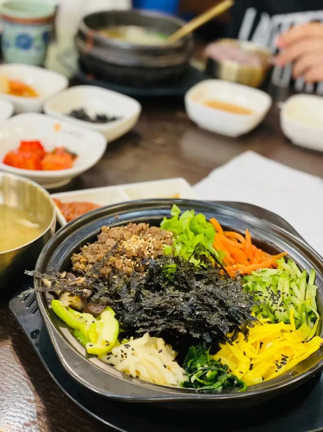 📍釜山豚骨汤饭家的拌饭就很好吃,份量很大,有各种蔬菜,拌饭酱可以自己加,脆脆的海苔碎绝对是点睛之笔。
