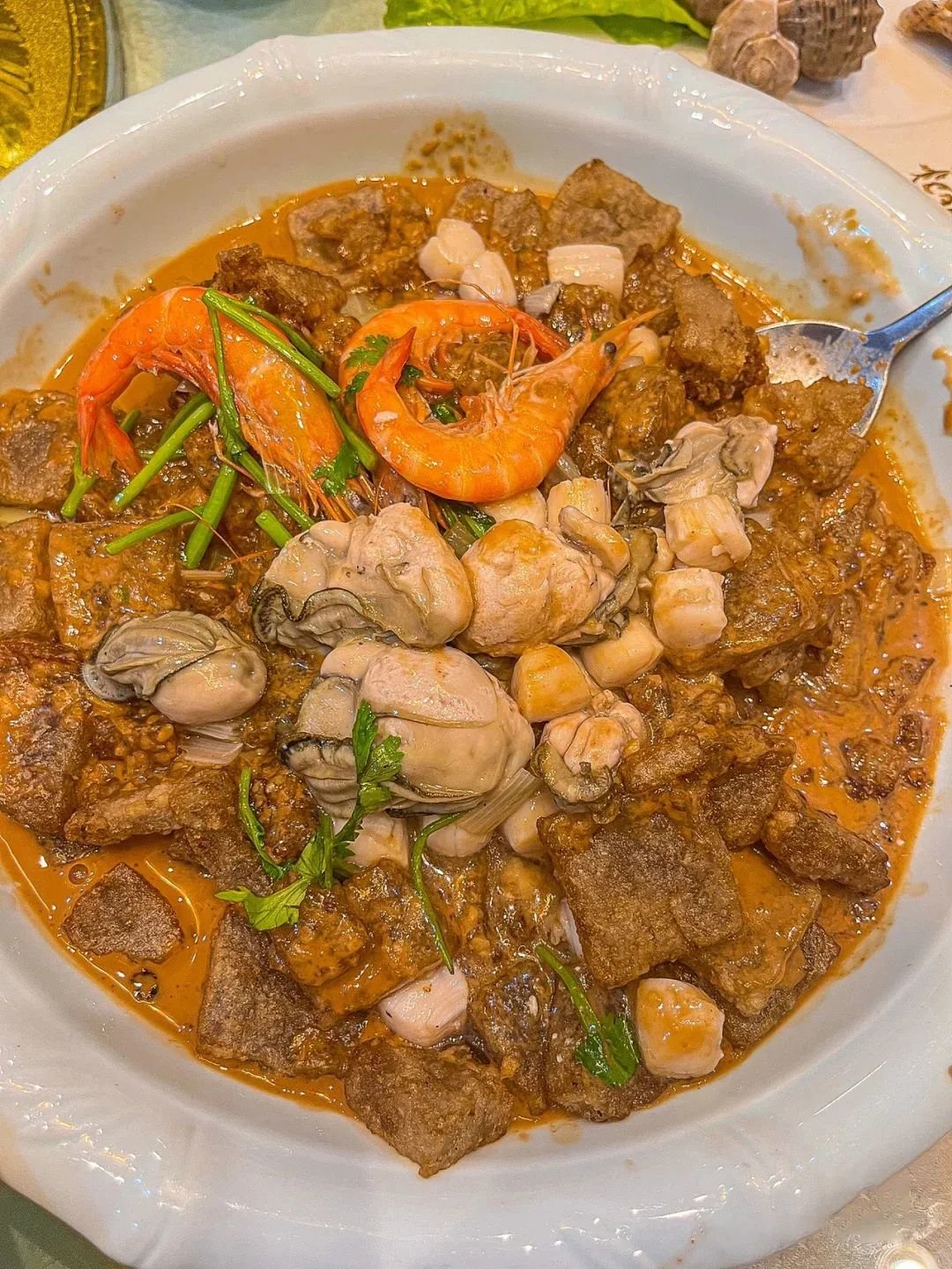 他家是本地超火的海鲜店,各类海鲜现点,海肠捞饭是他家的必点,每一口都是又脆又鲜,好吃到停不下来,还有鸟贝,虾爬,生蚝,炸蛎黄……海鲜种类非常齐全!