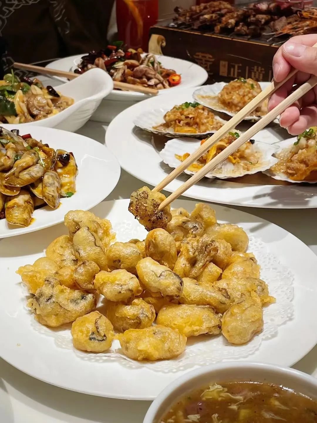 秋冬时节,肉质肥美的海蛎子,也是烟台餐桌上的常客,而一道炸蛎黄,几乎是逢年过节必不可缺的,当地人也管它叫“烧蛎黄”。