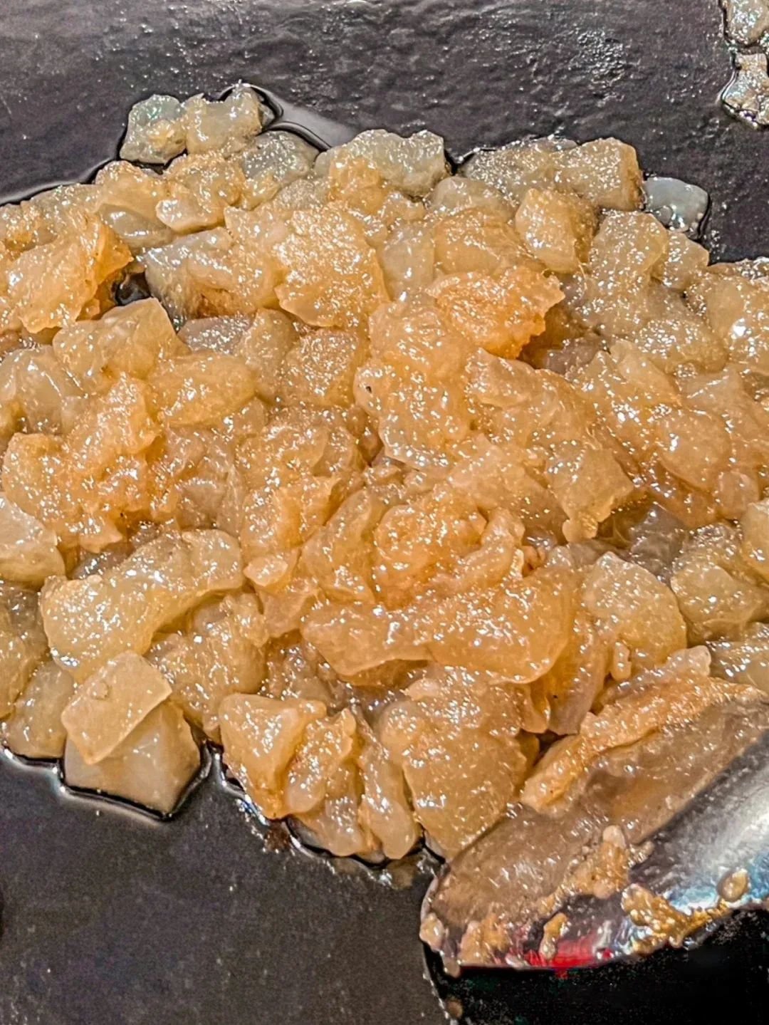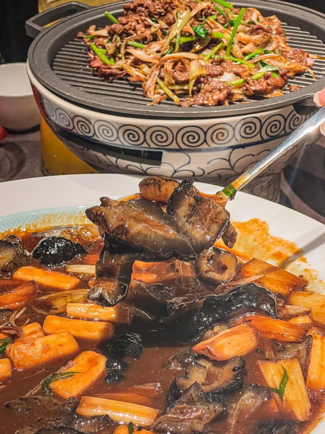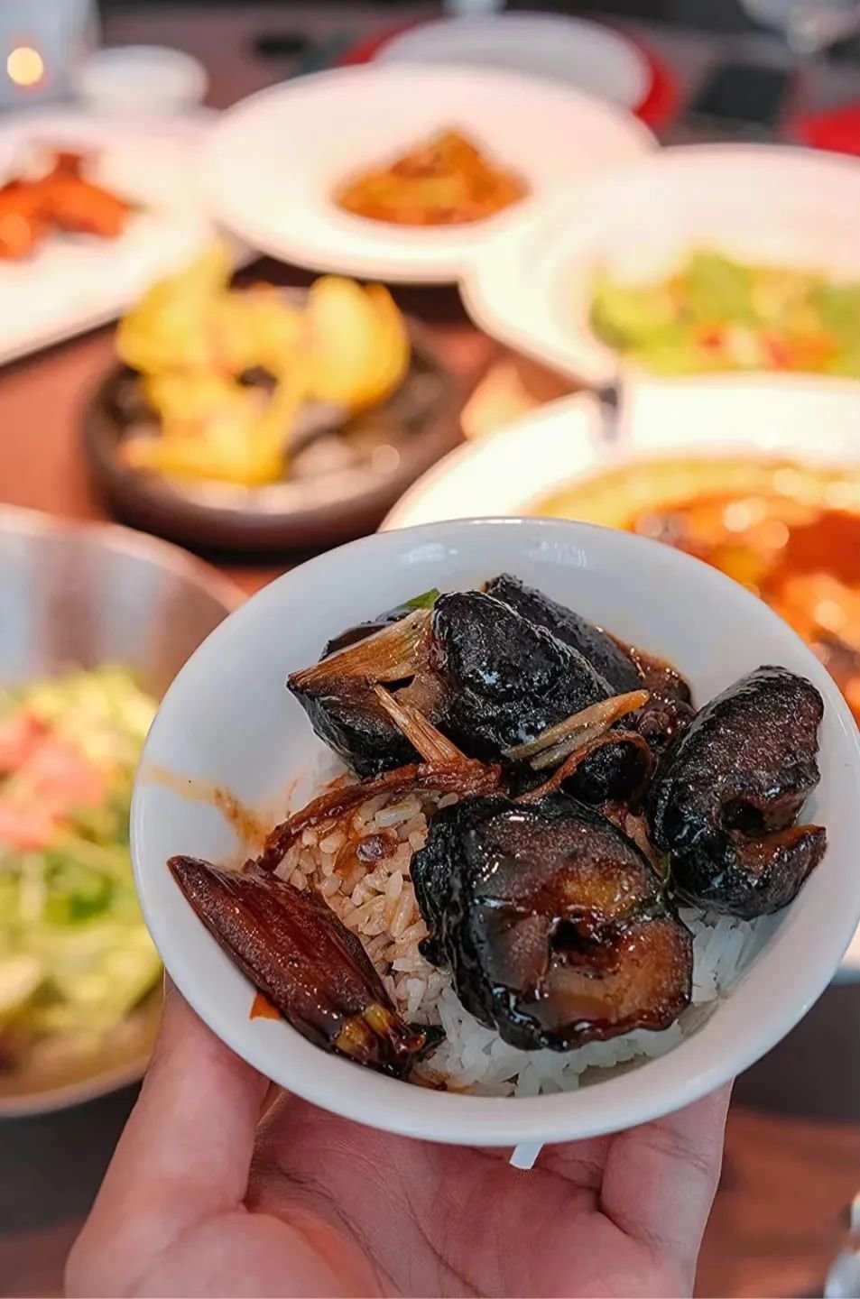趁着热乎才好吃,海参软糯略有嚼头,酱汁饱满醇厚,葱油浓郁鲜香,酱汁和葱香完全被海参吸附,却又不会咸苦,真的是下饭利器。