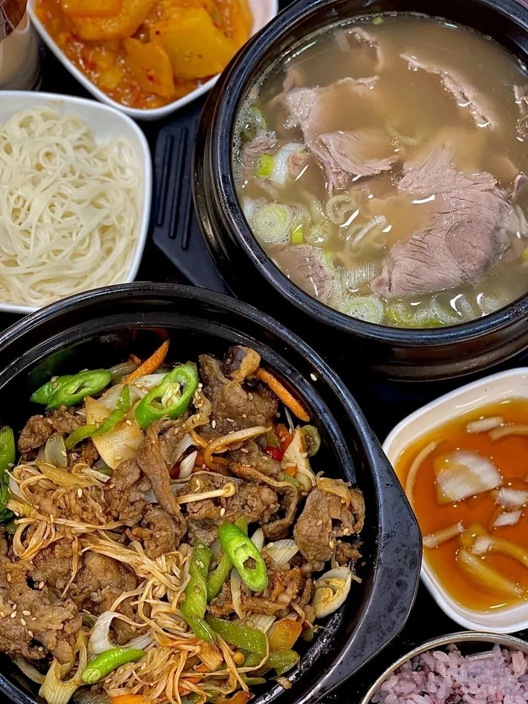 好多韩国人都来这里经商,也带来了正宗的韩式味道,拌饭,辣汤面,炒年糕,大酱汤,部队锅……统统都能尝遍。