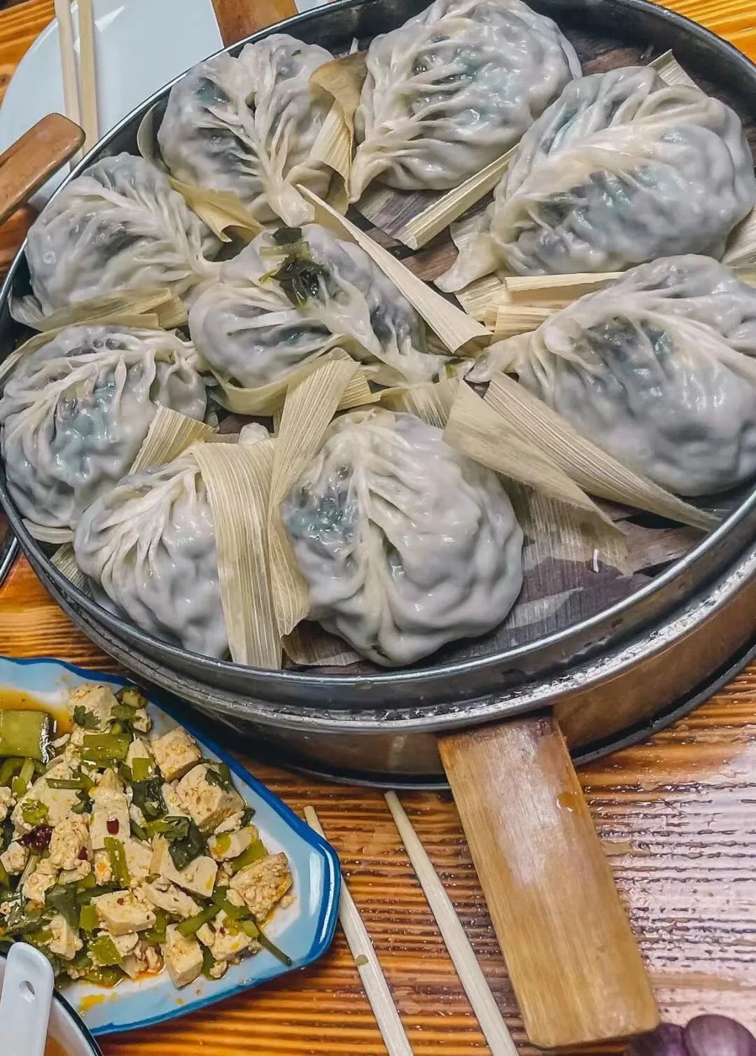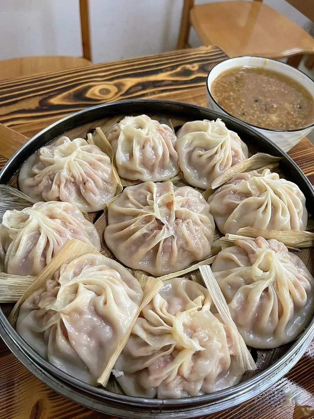 坐拥无数回头客的烫面包子店,包子都是当天手工包制的,皮子晶莹剔透,肉馅足足的,看着就让人很有食欲。