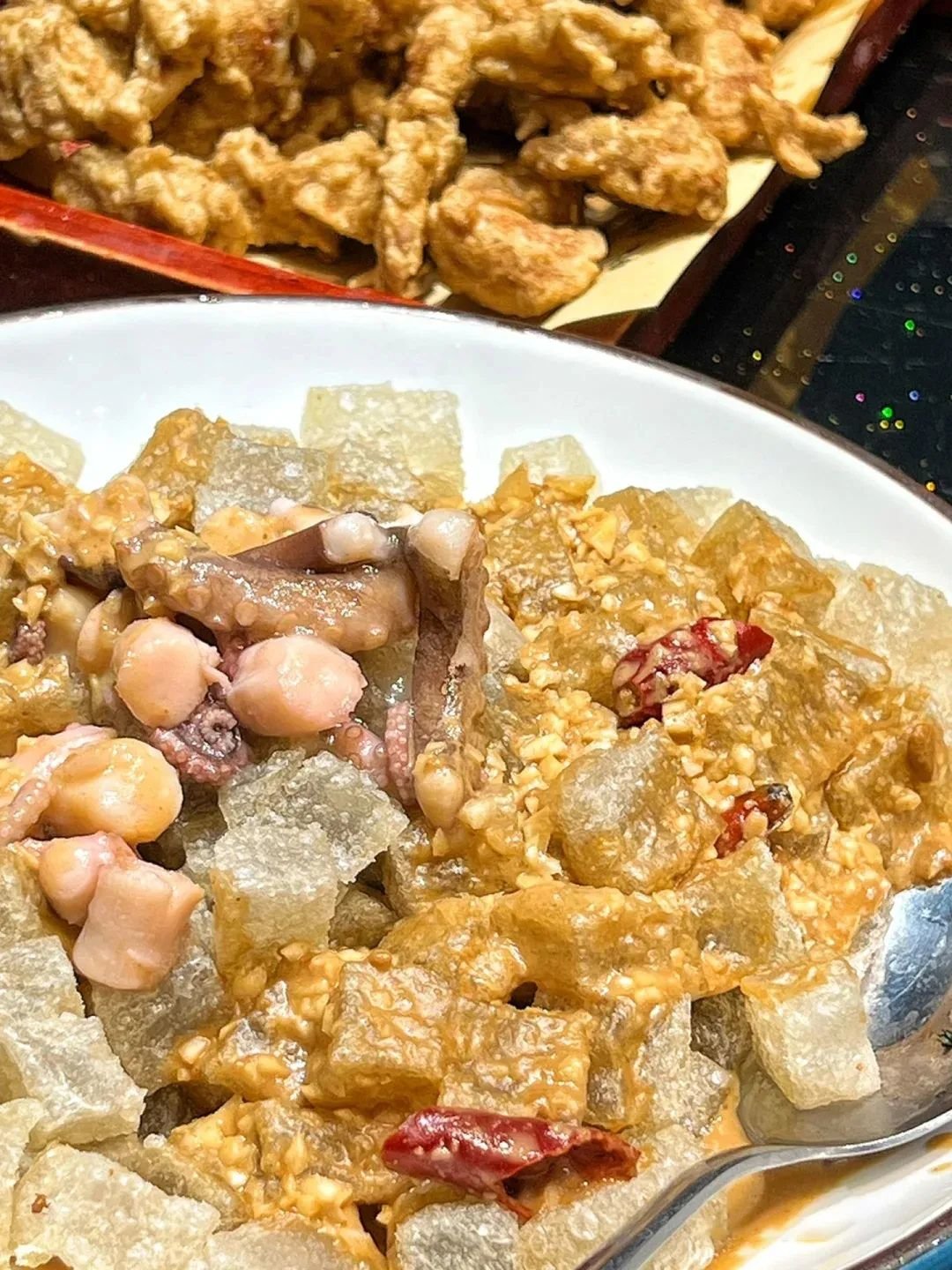 除了小吃,焖子也翻出了许多花样,海鲜焖子、芙蓉焖子、荤焖子、蹦跳焖子……足以说明烟台人民对于焖子的喜爱。