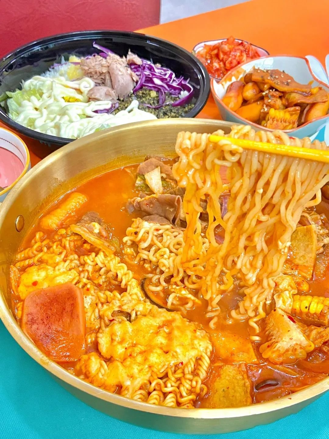 咬一口会拉丝的芝士年糕,吃一口Q弹嫩滑的牛肉,最后别忘了再加把拉面,面条裹着辣辣的汤汁,一下子就暖和了起来。