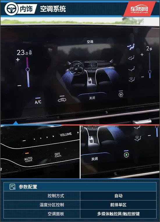 空调控制面板被集成在多媒体触控屏中,在驾驶过程中操作不是很方便。不过好在下方还配备了触控式快捷按键,配合单区自动空调,只要设定好温度,正常用车时不会对实用性造成太大影响。此外,车内还配备了支持雾霾监测的空气净化功能,当系统发现车内空气质量变差时会主动通过中控屏询问是否打开空气净化模式,并在中控屏中实时显示车内外的PM2.5指数。