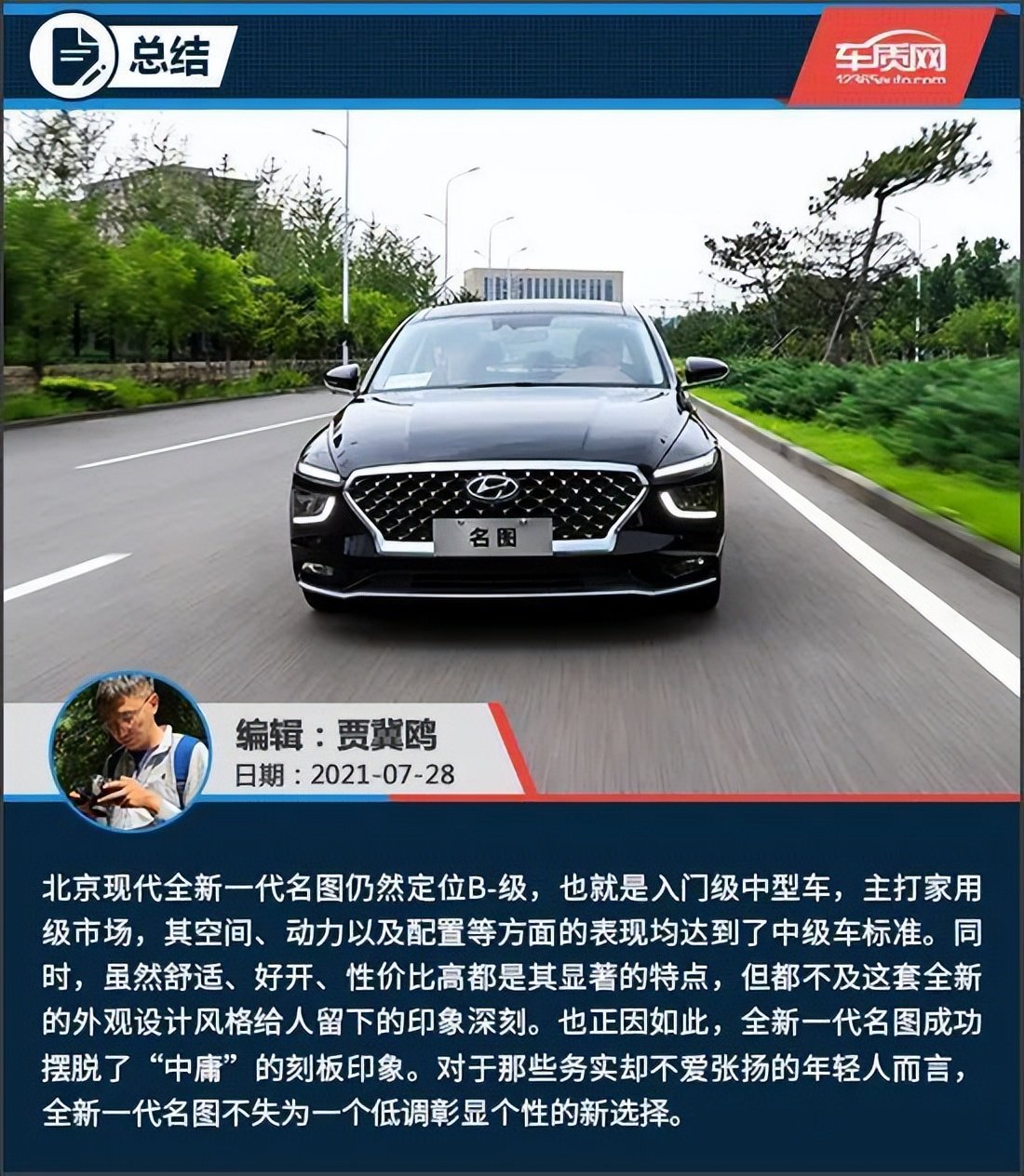 全新一代名图从设计到驾驶感受,确实与老款车型那股中庸的味道截然不同,舒适、轻松、好开,是它给人的第一感觉。不过,其骨子里仍然是一款家用车,所以对操控方面也不能要求过高。