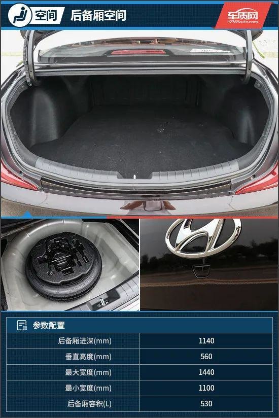 后备厢内部规整,虽然能看到轮拱侵占的现象,但并不明显,常规状态下后备厢容积为530L,不过后排座椅不支持放倒,所以扩展能力受到一定影响。掀开地台盖板,能看到底部配备了一个非全尺寸备胎,且周围还有余量,可以放置一些非食品类的物品。此外,车尾LOGO下方配备了一个隐藏式的后备厢开启物理按键,既不影响整体美观又很实用,值得点赞。