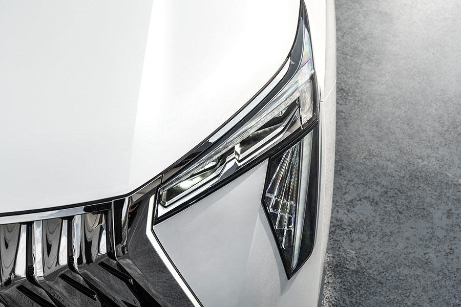 外观方面,广汽传祺M8宗师版采用全新的家族化设计,前格栅面积进一步加大,并一改往日阵列式横置格栅的设计,取而代之的是直瀑式格栅,直瀑式格栅采用更加立体的设计,在为前脸增加层次感的同时也让前脸看起来更加厚重。同样拉伸了前脸厚重感的还有双侧的“L”型大灯,“L”的造型同时在横向和纵向拉伸了车头的宽度和高度,存在感也变得更强。三款动态灯语的加入让整车看上去更加灵动。
