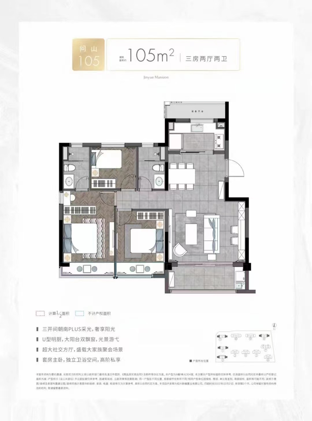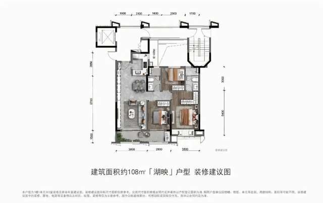 108㎡边套户型,三开间朝南,做了动静分区,不过也限制了厨房和餐厅的位置。