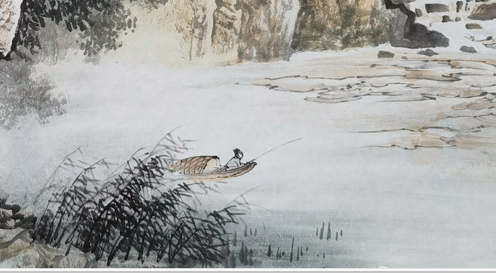 在这样一个微风和煦的晴天,泛一片小船,持一杆钓竿。