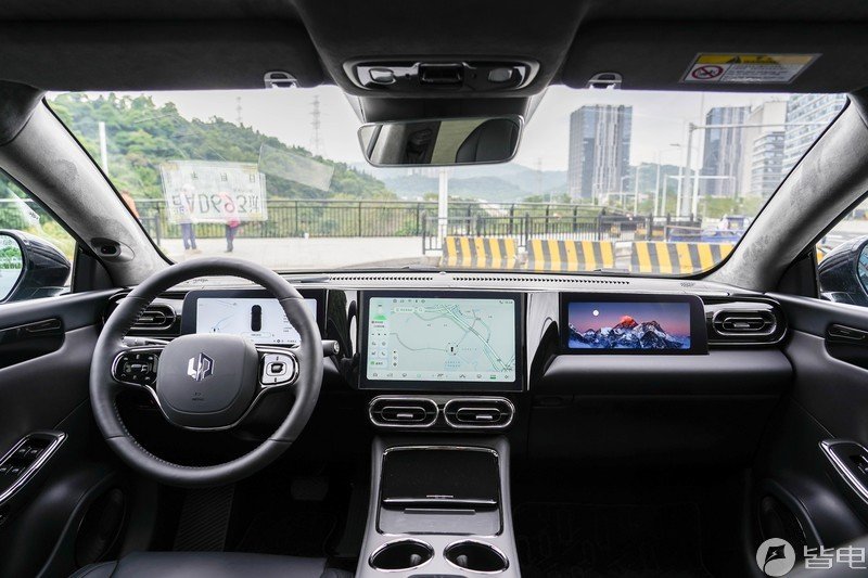 3.车机搭载高通8155芯片,和C11一样具备3个屏幕,中控12.8英寸,仪表和副驾娱乐屏均为10.25英寸,支持三联屏显示。