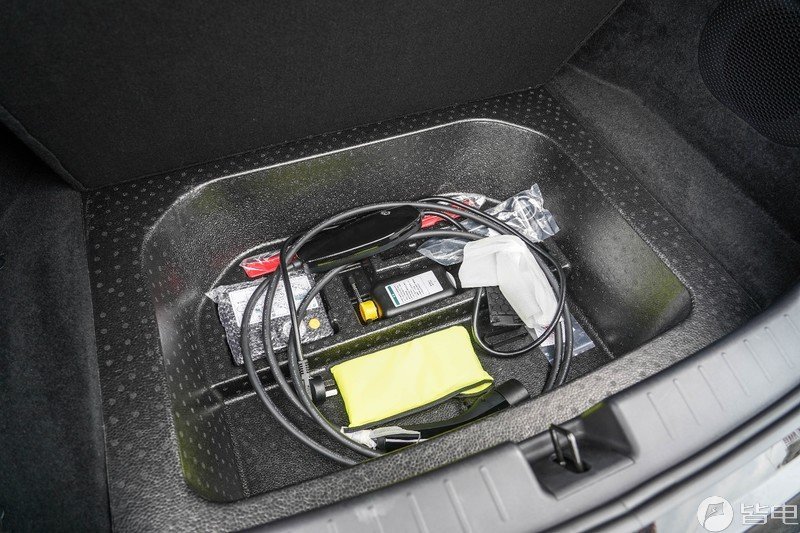 另外,后备厢下方也设计有储物空间,充气泵、补胎液和慢充线都可以放置其中。