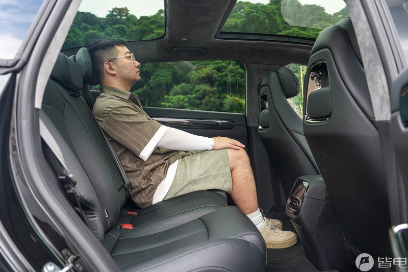 关于后排,它的座椅设计还不错,靠背角度合适,并且坐垫的长度也足够长,对乘客腿部承托到位,有一点需要提的是它的后挡风玻璃直接从后排头部开始,因此坐在后排会有点头探在天窗上的感觉。