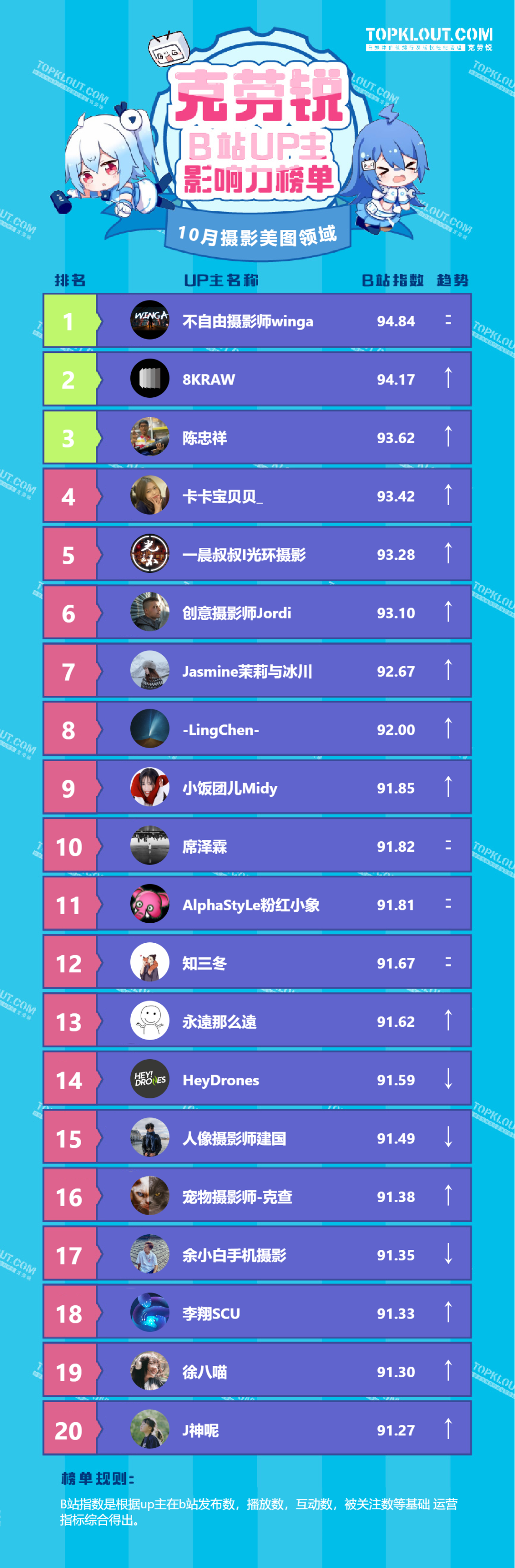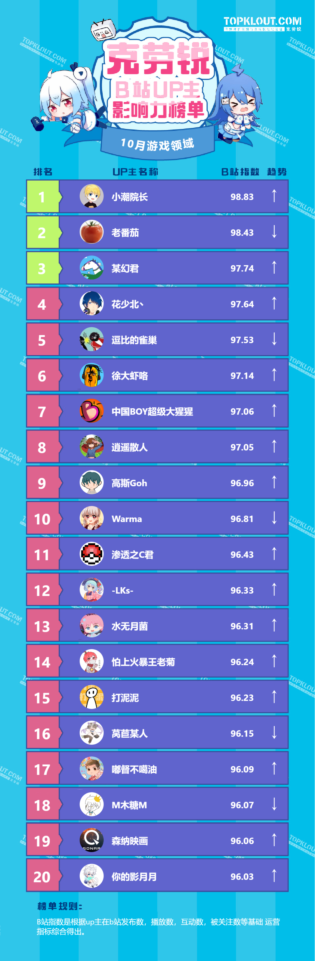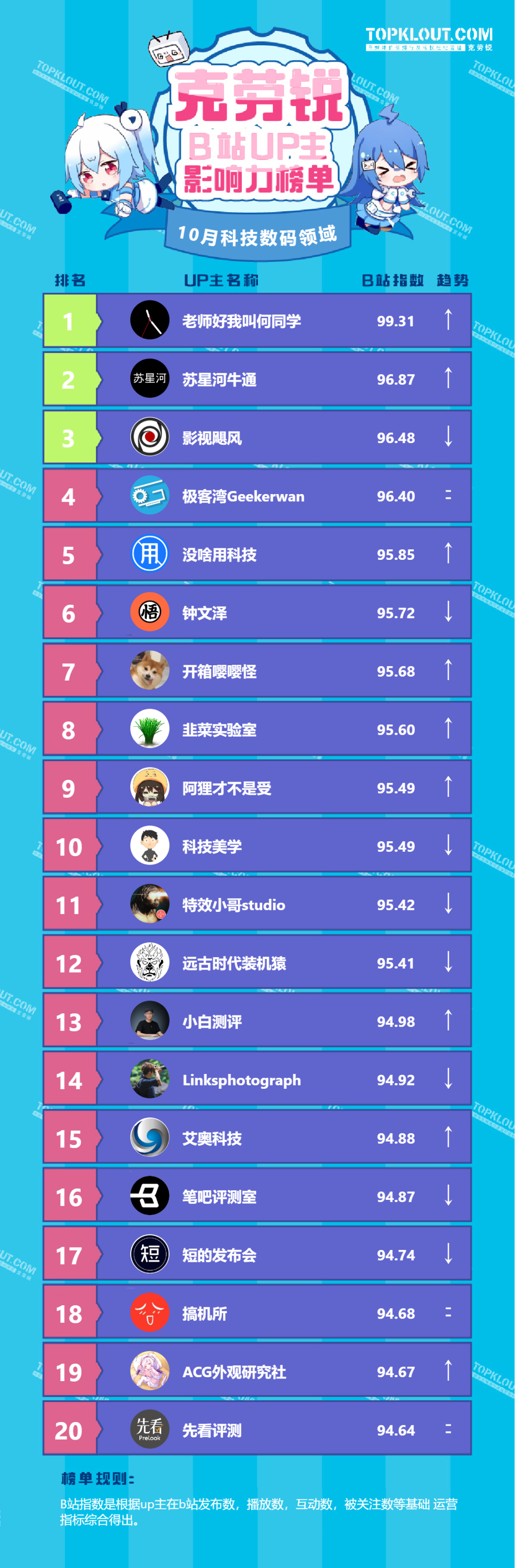 为了让广告主和投资人更充分地了解B站各垂类头部UP主各自的特点以及影响力,克劳锐推出了《B站UP主影响力榜》。