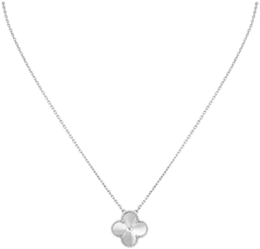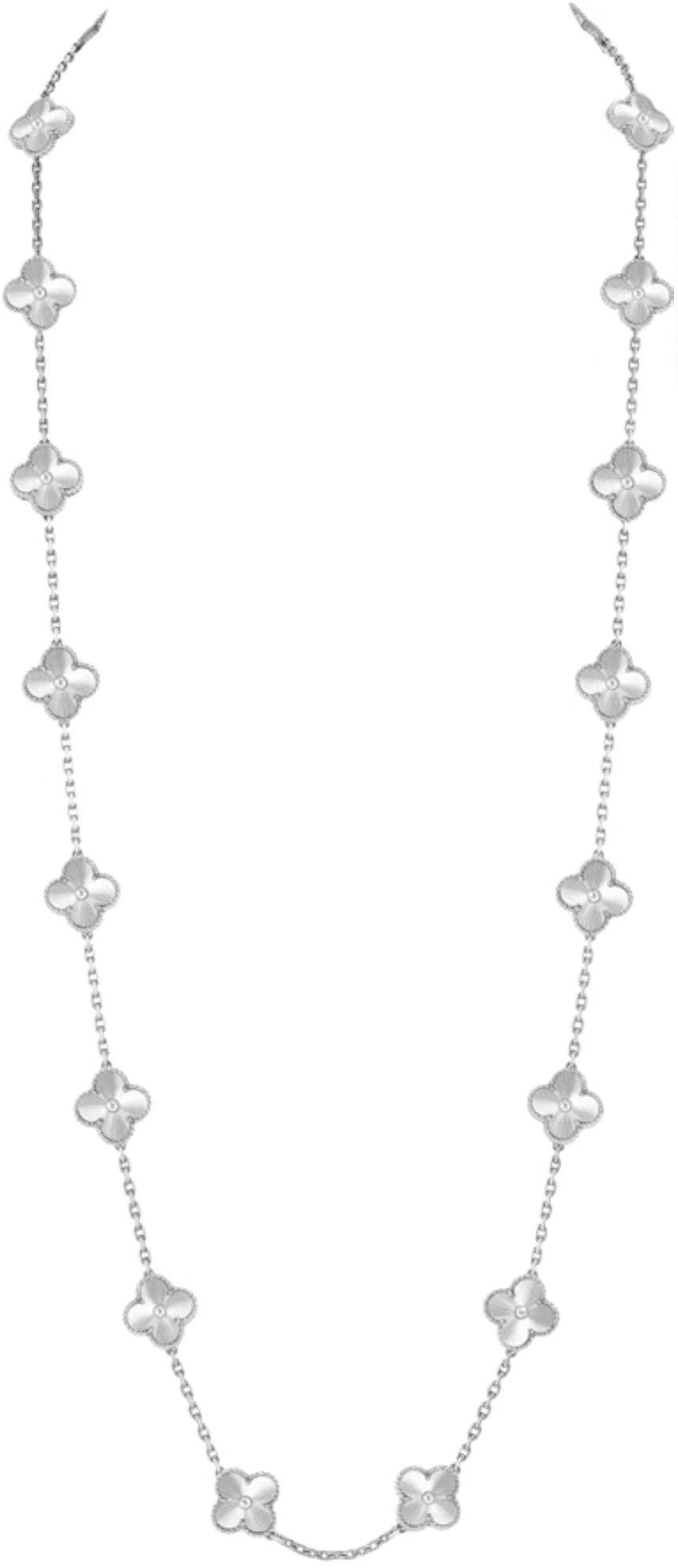 Vintage Alhambra长项链,20枚四叶幸运图案 白K金,玑镂雕花
