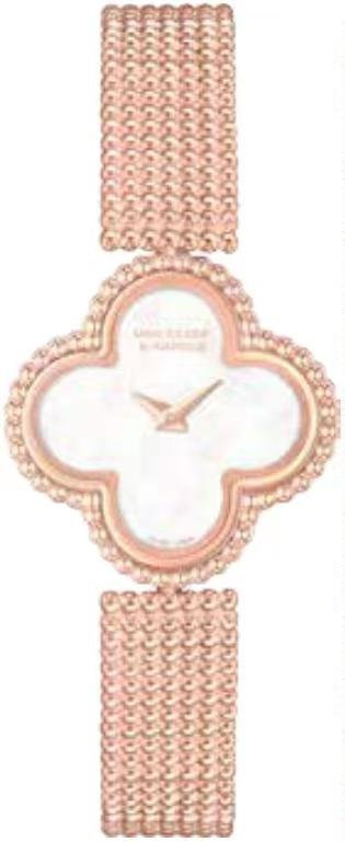 Van Cleef & Arpels梵克雅宝融汇制表工艺与珠宝创 作灵感,以崭新时计作品令Alhambra四叶幸运图案 焕发新姿。通过精致迷人的全新Sweet Alhambra玫瑰 金腕表,充分彰显世家标志性金珠工艺及卓越的制 表技术。