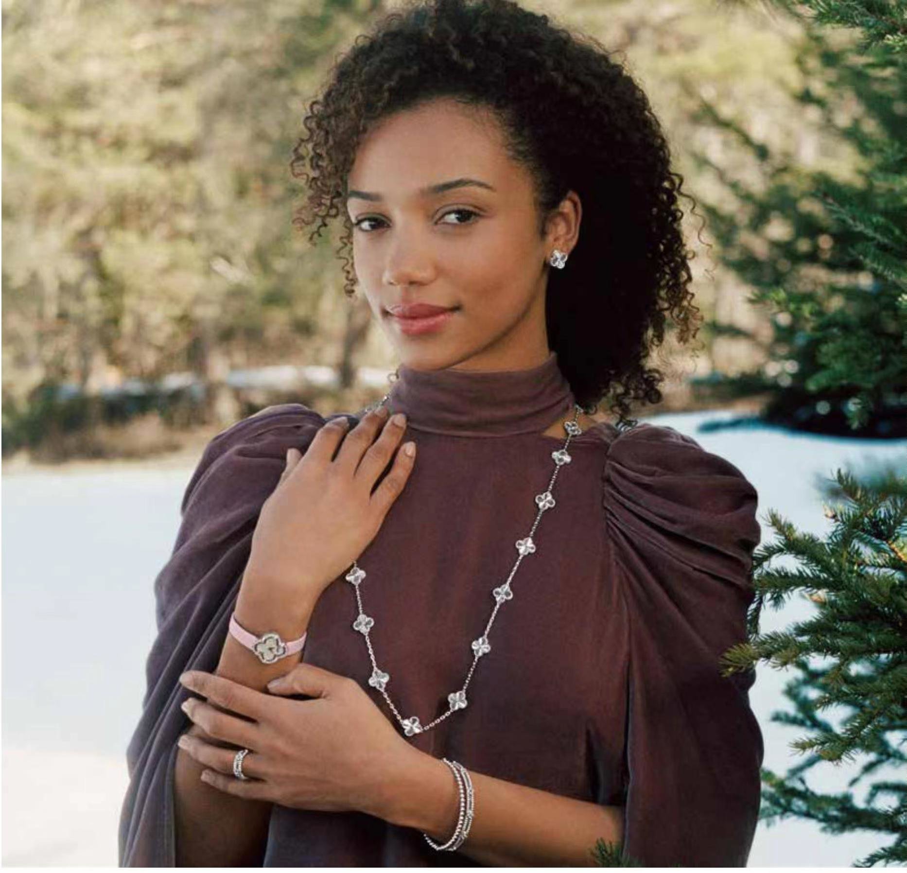 Alhambra四叶幸运系列是Van Cleef & Arpels梵克雅宝的经典之作,荟萃世家高级 珠宝工艺精髓。每一件作品均汇聚世家出类拔萃的工艺,融汇宝石切割师、珠宝工匠、抛光师以至宝石镶嵌师的非凡造诣。新作以典雅的圆珠饰边烘托玑镂雕花白K金 图案,延续Vintage Alhambra系列的美学传统。