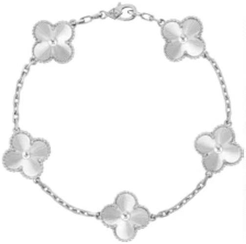 Vintage Alhambra手链,5枚四叶幸运图案 白K金,玑镂雕花