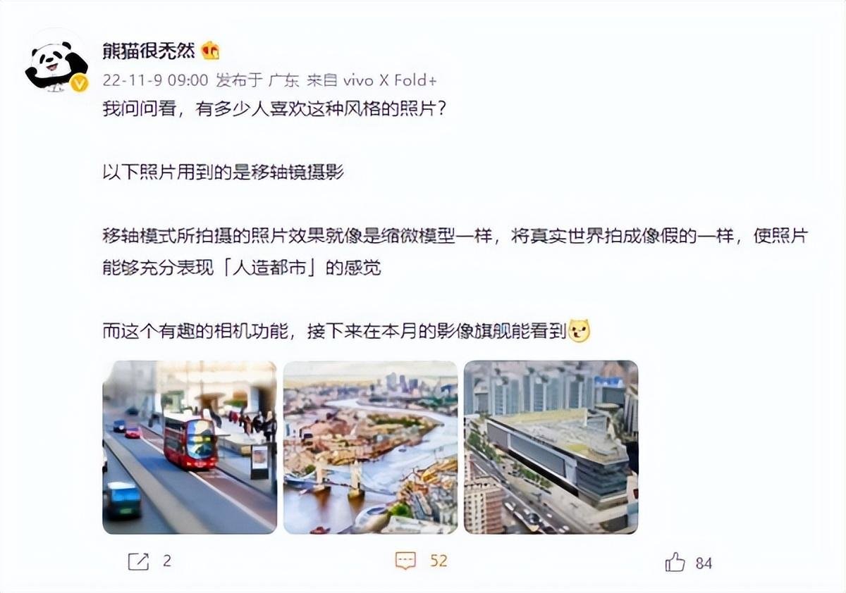 数码博主“熊猫很禿然”暗示,X90 Pro+将新增移轴摄影模式。