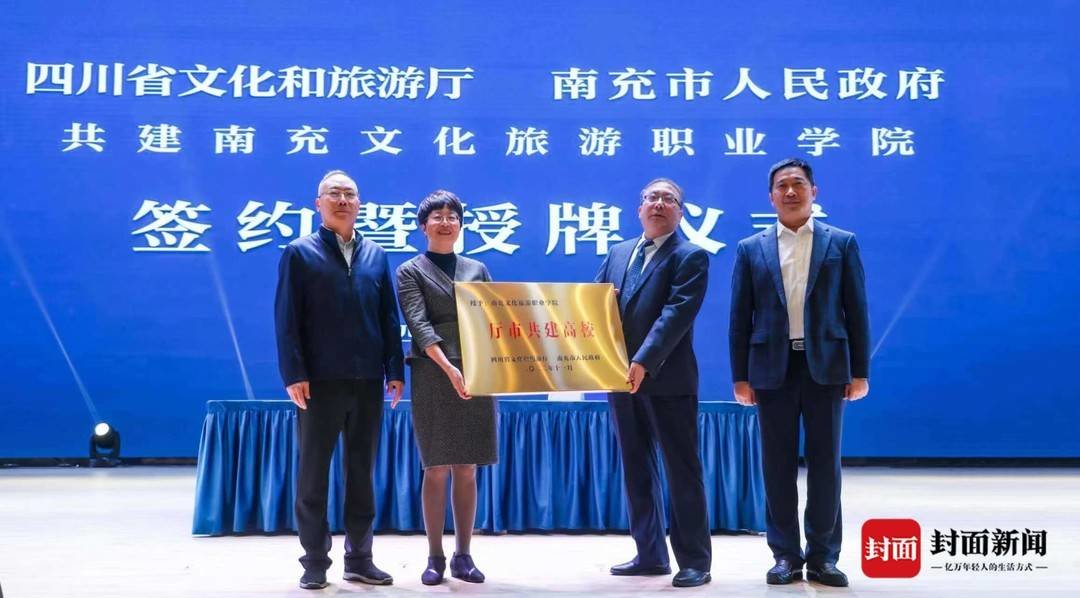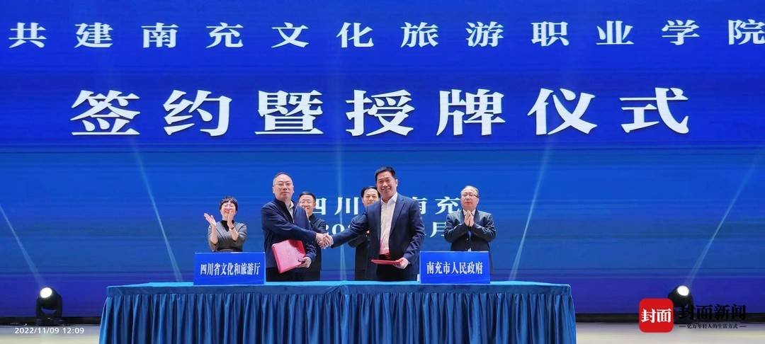 11月9日上午,南充文化旅游职业学院演播厅,四川省文化和旅游厅与南充市人民政府共建南充文化旅游职业学院签约暨授牌仪式举行。