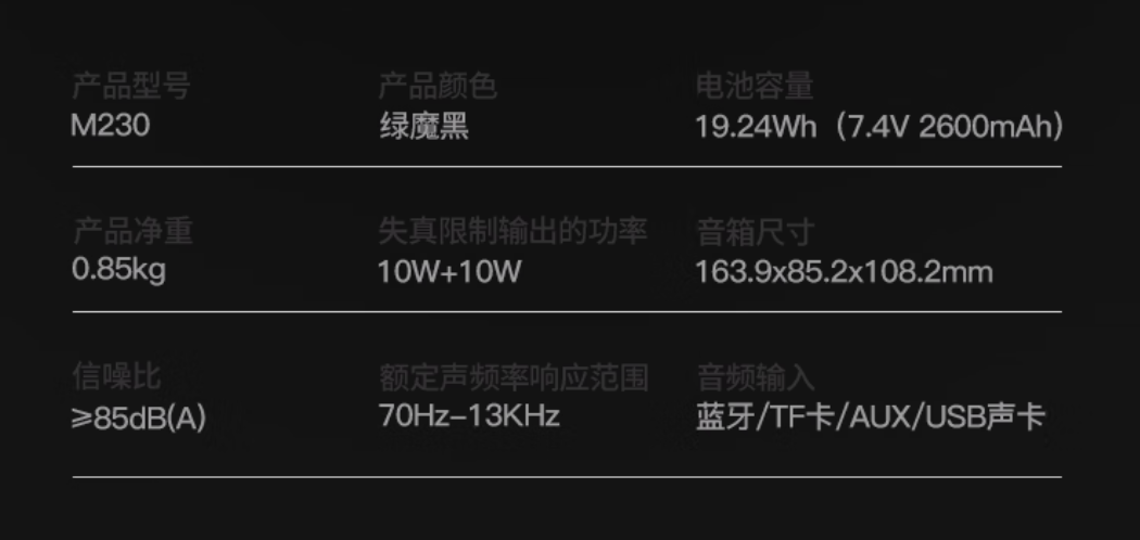 IT之家了解到,这款音箱内置两节 2600mAh 电池,支持蓝牙 5.0、USB 一线通、AUX 输出和 TF 播放四种播放方式。