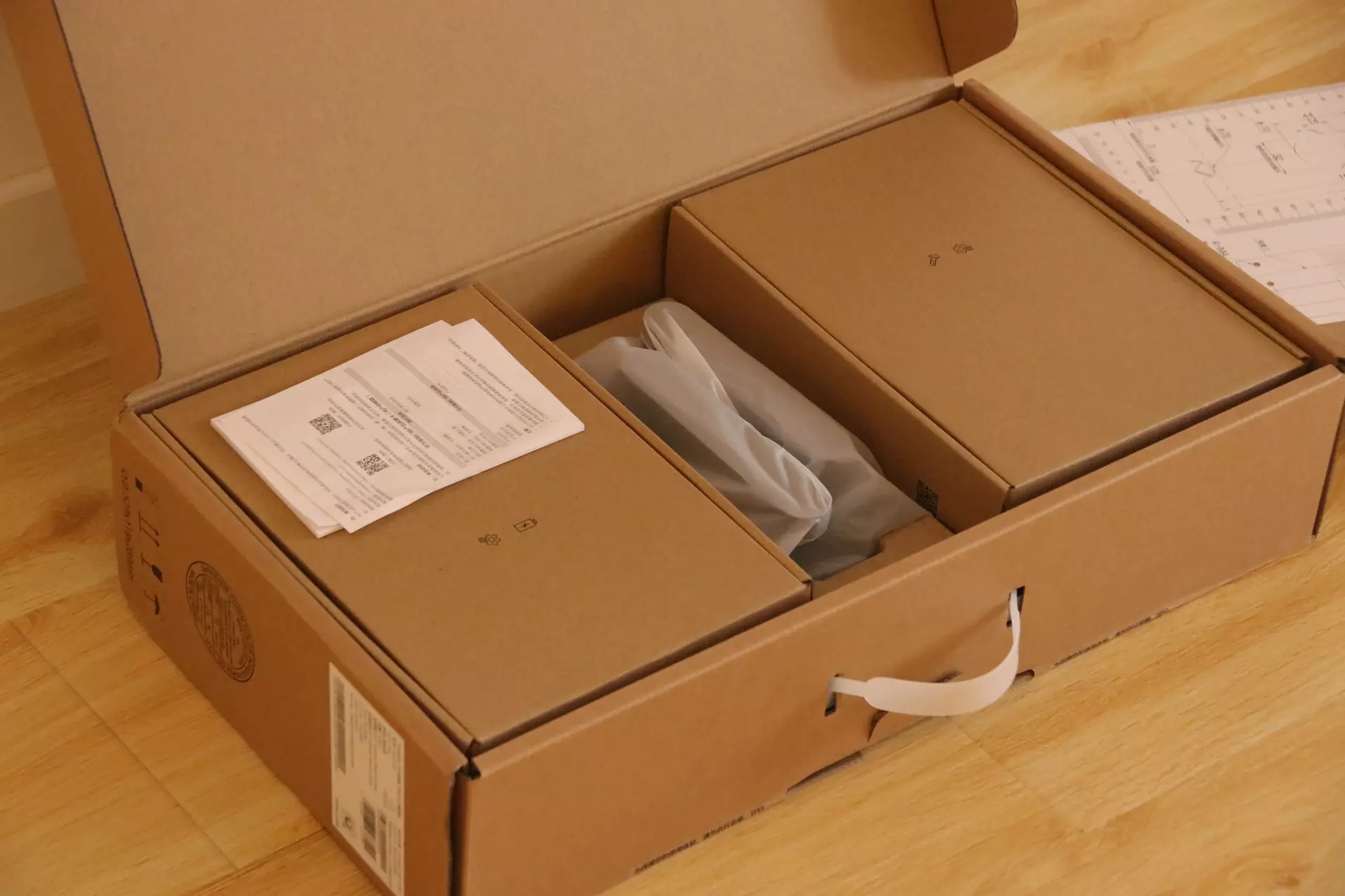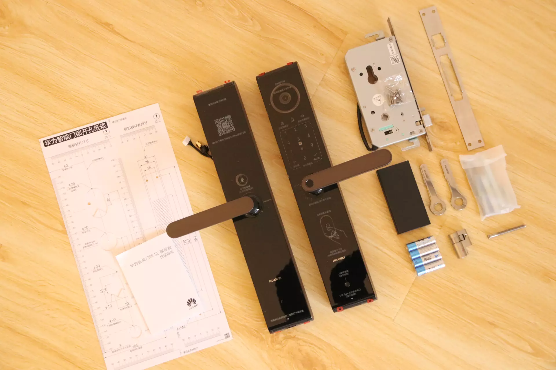 华为的品质自然没得说,这款门锁带有智能猫眼,售价也在千元出头,性价比很高。我们先看下它的包装盒,采用的是牛皮纸盒包装,封面有简单的线条图,大致能看出这款门锁的轮廓。