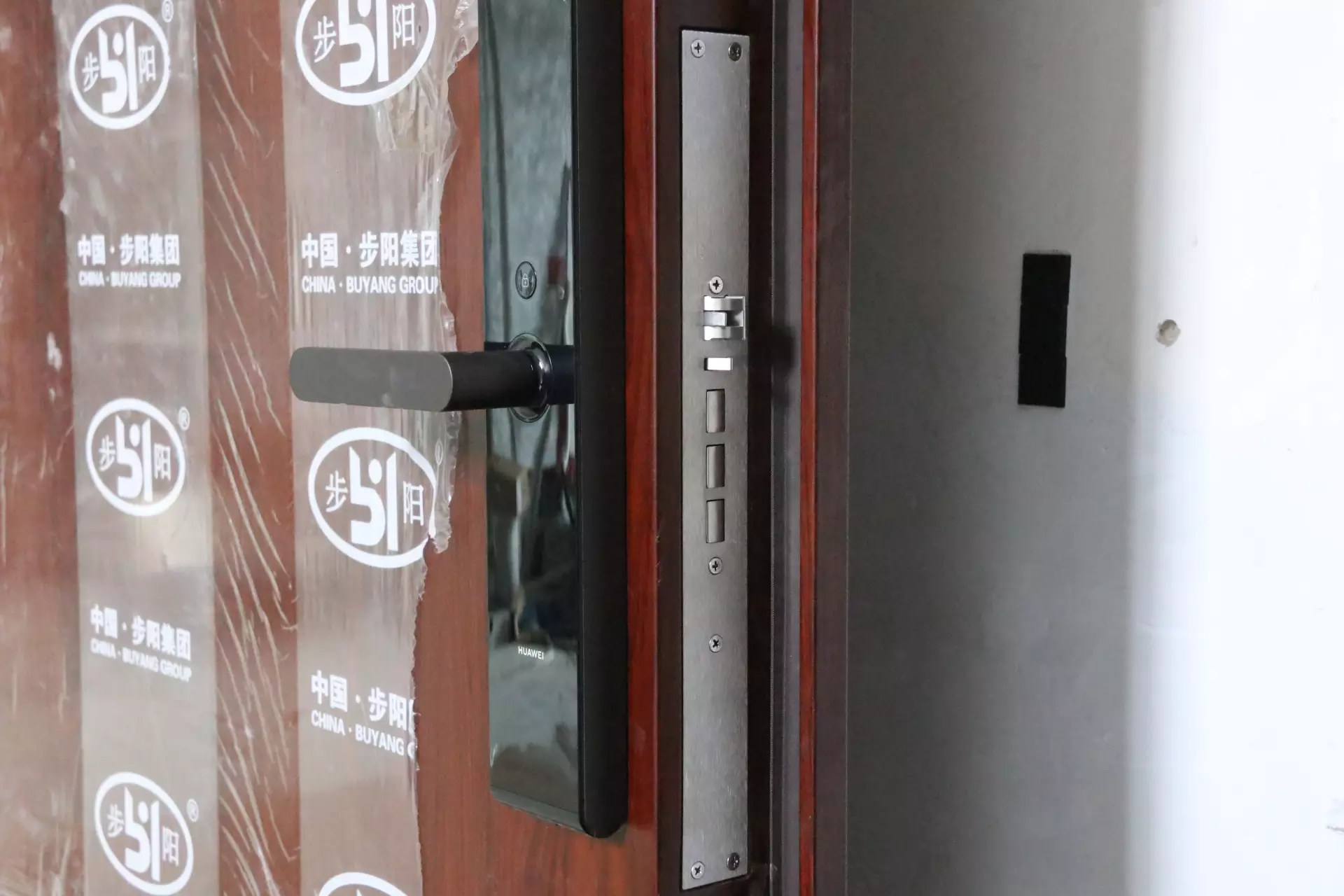 安装完成后就是这样子了,瞬间把我家的入户门提升及格档次。我家对门邻居安装的是指纹锁,也带猫眼,安装师傅说是杂牌的,不过听邻居说也花了2千大洋,心想这坑定时入坑了。目前来说我家门锁在我这个单元里还没有对手,而且品牌价值也在这摆着呢。特喜欢有人从我家门口经过时常说的一句话“你看,还是华为的呢!”