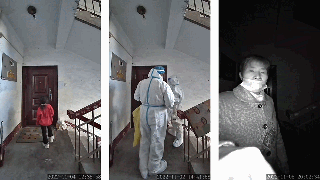 安装这款华为智能门锁 SE 猫眼版后,也看到了一些平时看不到的情形,比如门墙玩耍的小女孩;上门做核酸的大白们;还有对门锁好奇的大妈。
