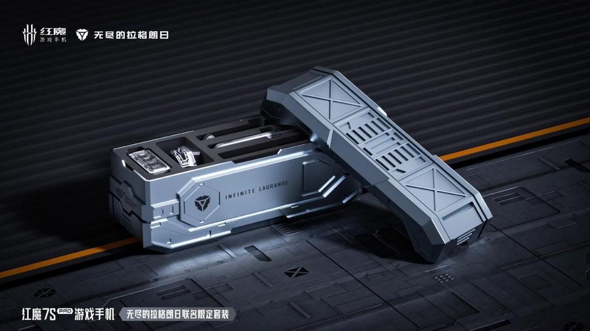 根据红魔游戏手机官方微博透露,红魔7S Pro×无尽的拉格朗日联名限定套装内包含了装载「武器系统、装甲系统、动力系统」的红魔7S Pro定制版、100W四口脉冲能量模块、维塔斯涡轮散热背夹战机,为玩家带来了全套作战装备,整体设计非常到位。