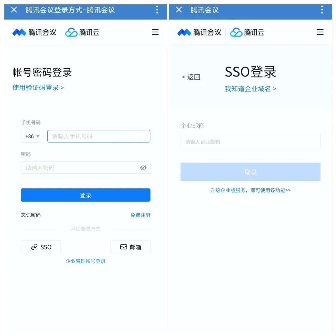 参会人员可在登录页面选择“SSO 登录”,输入企业邮箱登录,安全更便捷。