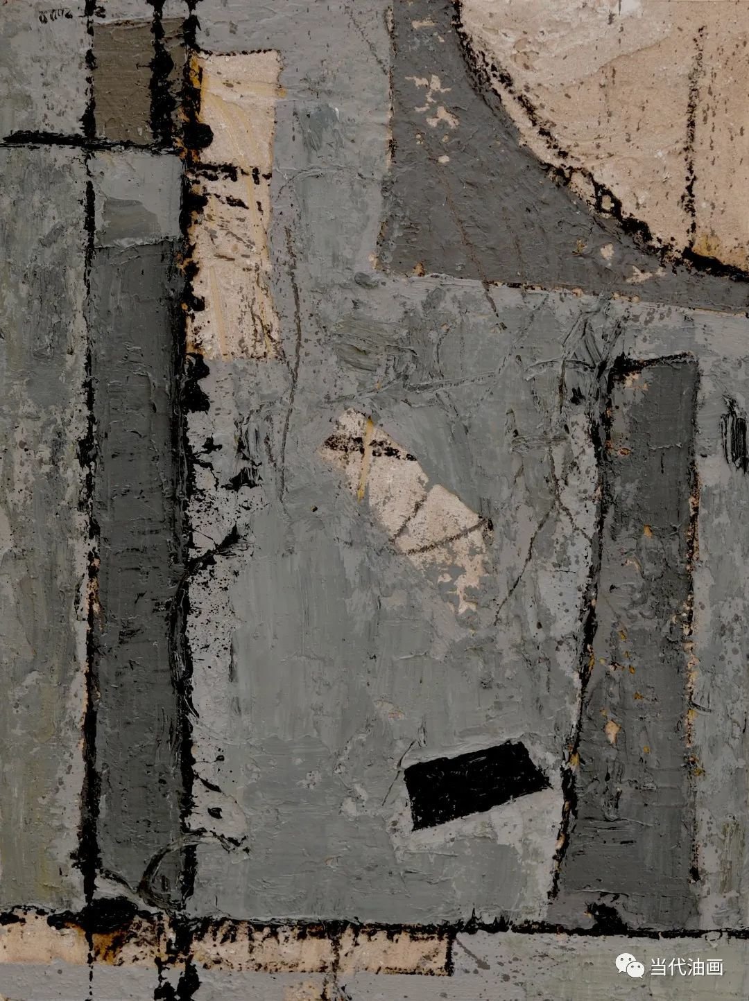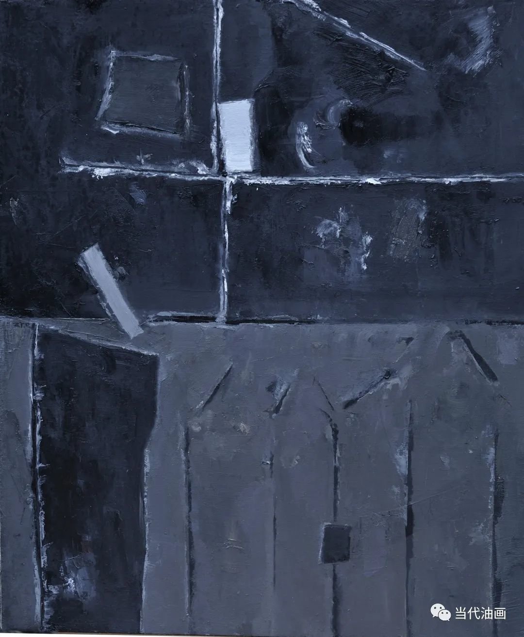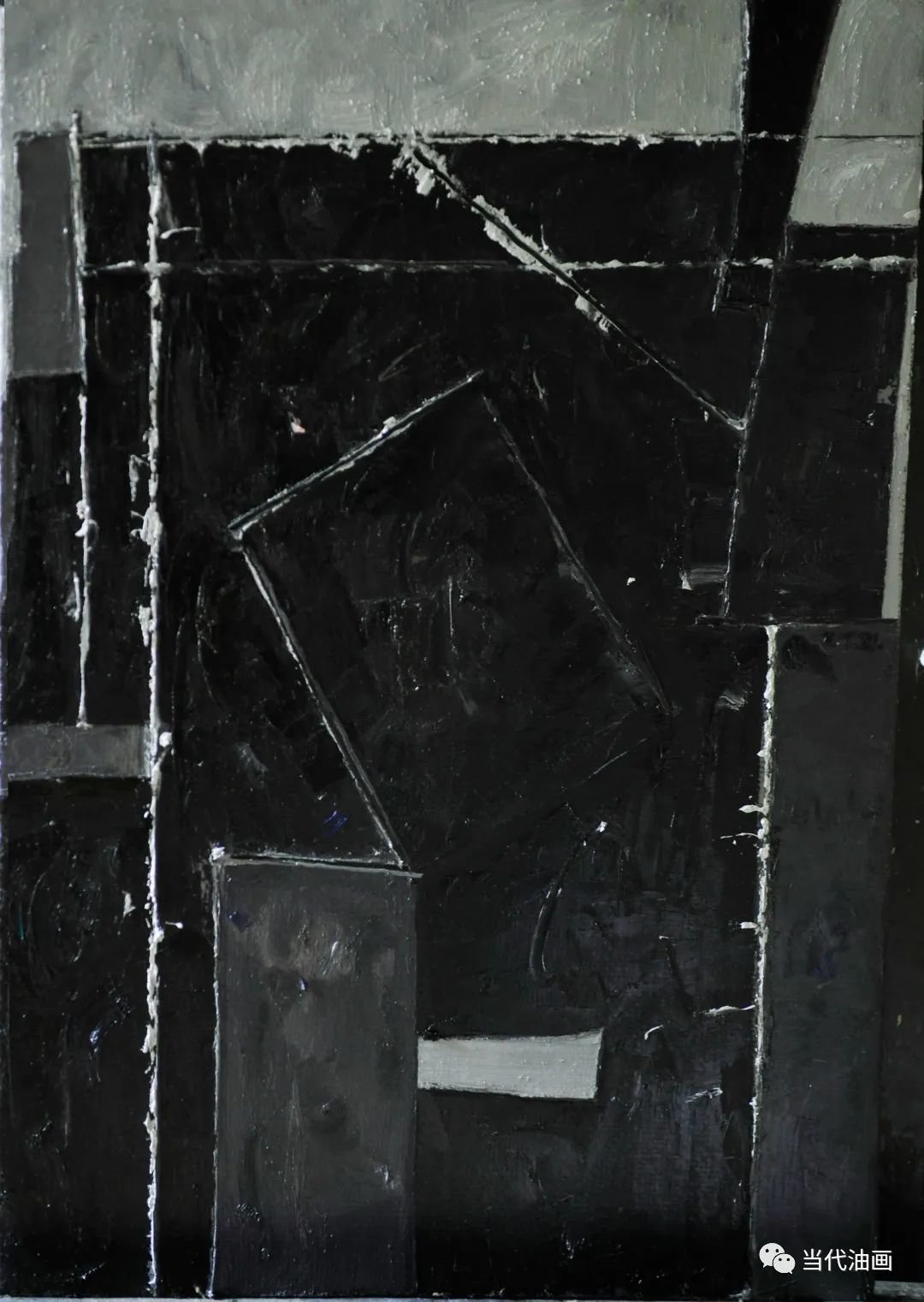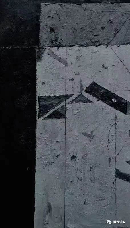 直线切割是周涛这批新作的基本特征。与其说是一种纯形式主义的探索,不如说他是在表达一种比过去更加强烈的审美体验。他通过对过去所创造的那种空寂境界的解构与重构,通过那些仿佛从皮肤上划过去的、如刀锋一样的划痕,呈现的是一种被切割的痛感。加以凝重、压抑的铅灰色调,更加透露出一个孤独灵魂对这个现存人世的悲悯和无望。