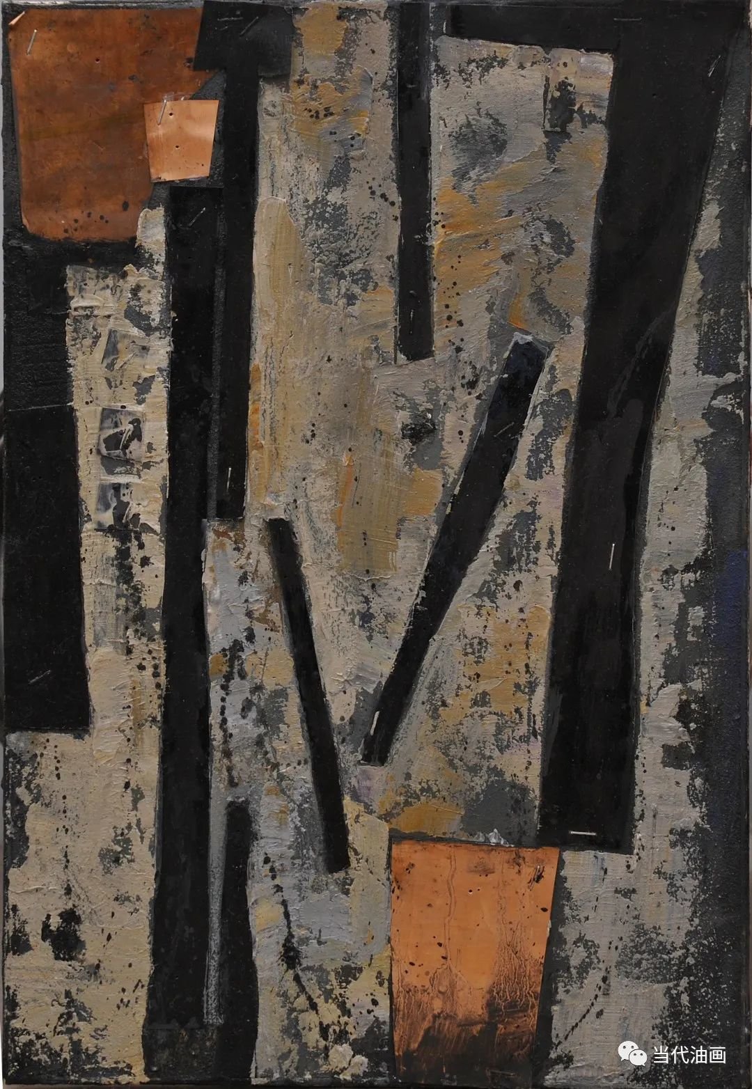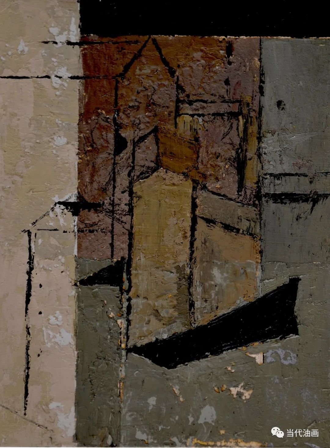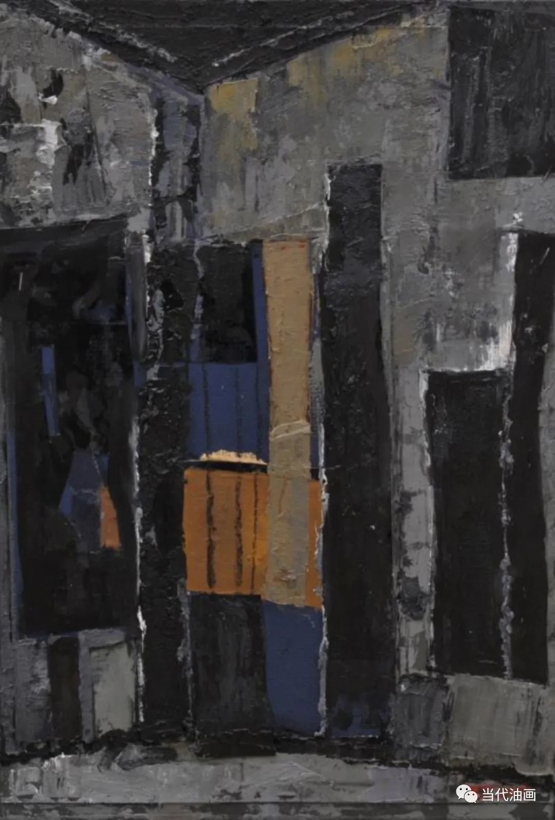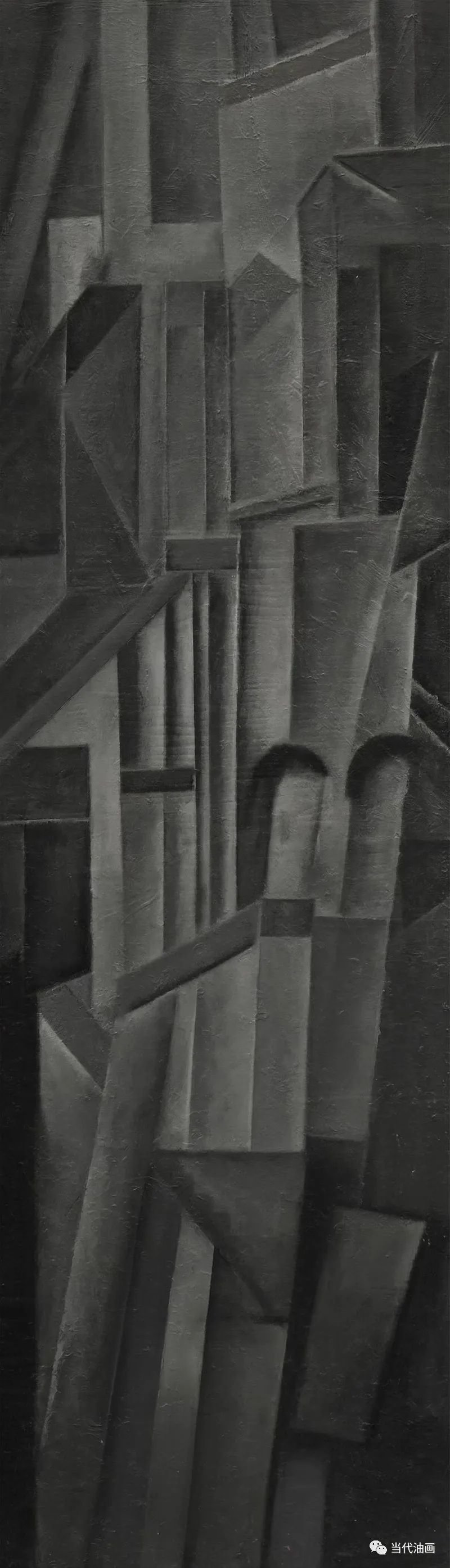直线切割是周涛这批新作的基本特征。与其说是一种纯形式主义的探索,不如说他是在表达一种比过去更加强烈的审美体验。他通过对过去所创造的那种空寂境界的解构与重构,通过那些仿佛从皮肤上划过去的、如刀锋一样的划痕,呈现的是一种被切割的痛感。加以凝重、压抑的铅灰色调,更加透露出一个孤独灵魂对这个现存人世的悲悯和无望。