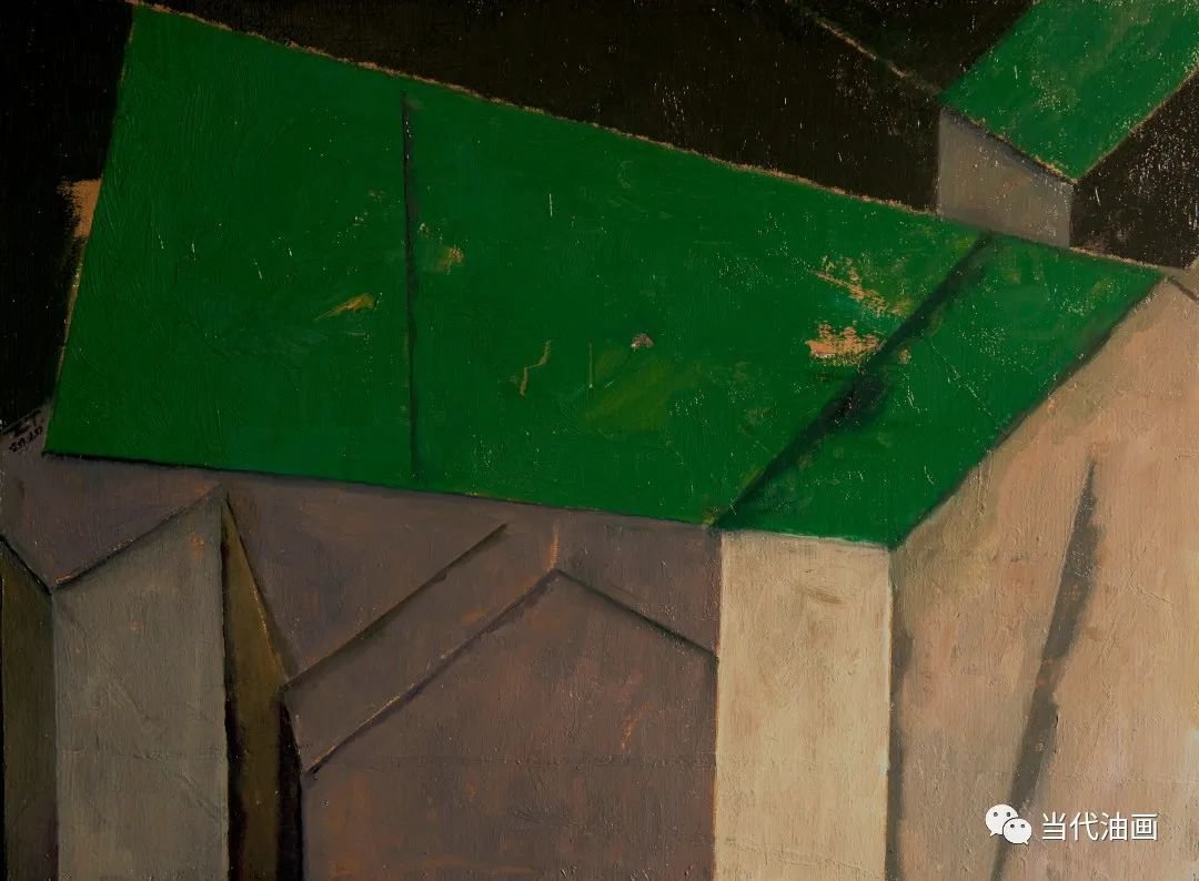 周涛的画风曾两度蜕变,从一种厚重的表现主义,转向一种更符合他心灵状态的单纯宁静的抒情风格。近两年,他的这批新作是再次更具力度的蜕变。由清寂宁静的诗意抒情转向一种凌厉的立体主义风格。周涛的新作一反过去的温和气息,变得艰涩而凝重,粗粝而冰冷。