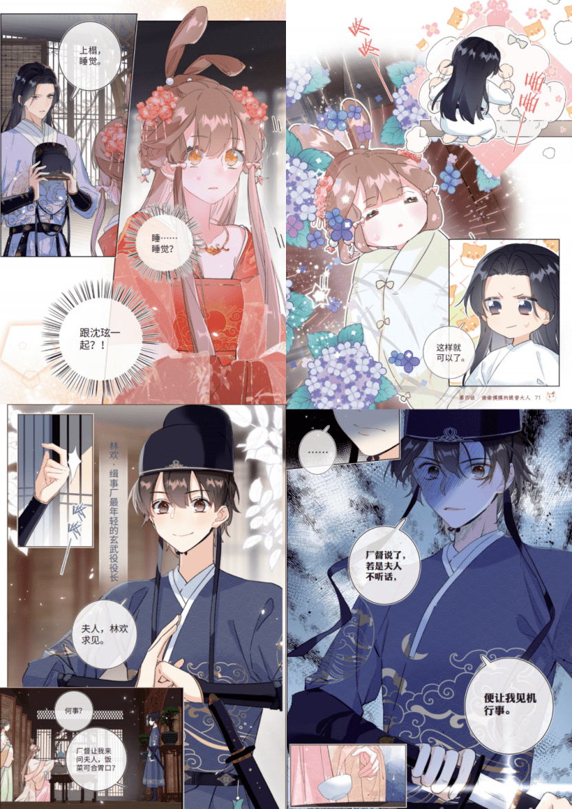 沈玹安排缉事厂最年轻的玄武役役长林欢带长宁熟悉环境,没想到长宁在寻找爱宠琥珀的时候意外听到沈玹他们在议事,但沈玹并没有做什么只是让林欢跟着长宁。为了“不被灭口,保住小命”长宁主动搬到下人房,远离沈玹。