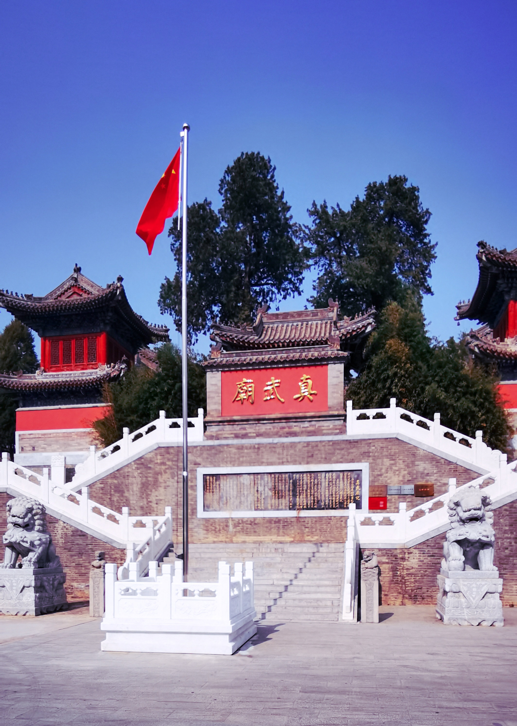 真武古称玄武,道教尊奉的神灵之一,为四象里东青龙、西白虎、南朱雀、北玄武的玄武,北方的守护神。唐代唐太宗李世民赐予封号“佑圣玄武灵应真君”,标志着玄武人格化的开始。到了宋朝,因宋真宗赵恒原名玄休、玄侃,为避其名讳改为真武大帝。相传明朝明成祖朱棣在真武大帝的显圣相助下打下了江山,朱棣将真武大帝奉为护国神,赐予封号“北极镇天真武玄天上帝”,并在全国各地大力修建真武庙推崇真武大帝,为武学之人的护法神,修真之人的守护神。