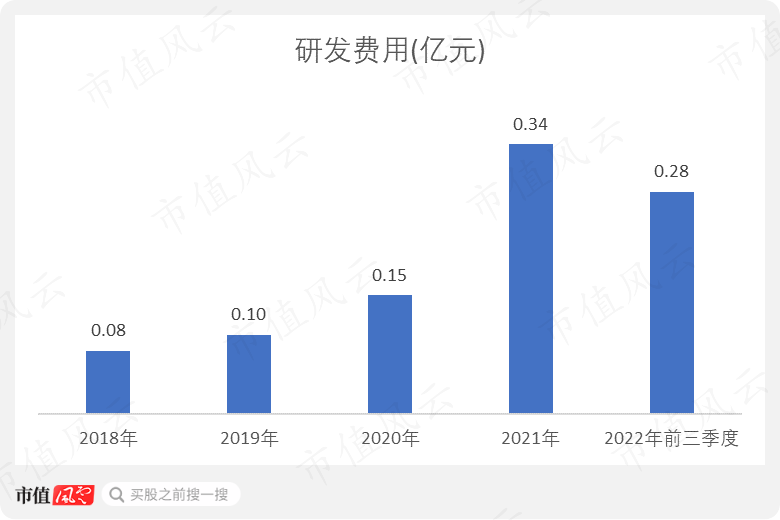 公司的研发投入全部为费用化支出,研发费用从2018年的0.08亿元持续增长至2021年的0.34亿元。