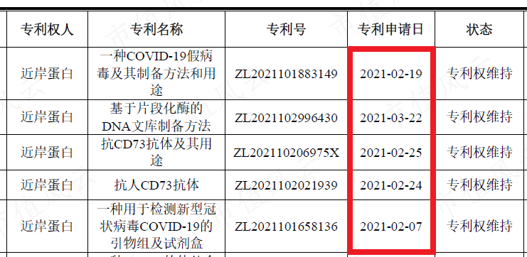 风云君就发现,近岸蛋白的19项发明专利中,有10项全都是在2021年以后取得的。