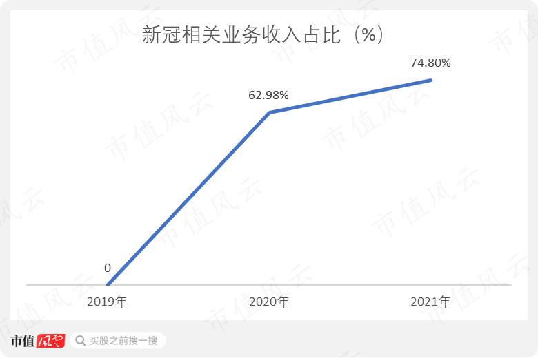 2020年疫情之前,公司自然没有新冠相关业务。2020年,新冠相关业务的收入占比高达62.98%,2021年这一比例进一步提高到74.8%。