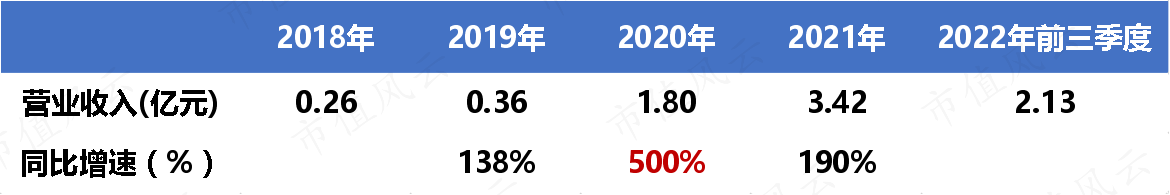 但是2020年增长得更猛,当年同比增速高达500%!和其他年份相比2020年的收入增速明显高得有点不正常,背后原因风云君依旧会在后文讲。