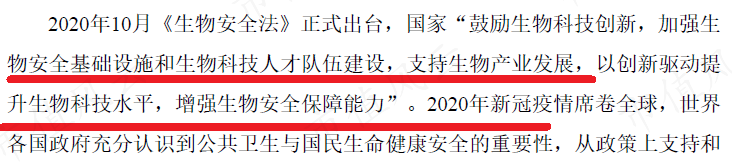 2020年10月,中国更是专门出台《生物安全法》,当中明确要求“增强生物安全保障能力”。