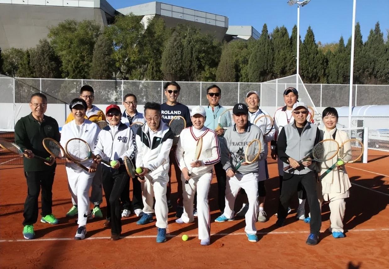 而就在几天前,靳东在北京某网球中心与一些上年纪的球友们一起打球,并且还在球场上拍了合影照,站在人群中间的靳东,戴着墨镜笑得特别开心,可以说是毫无违和感,仿佛早已融入进了老人群体。
