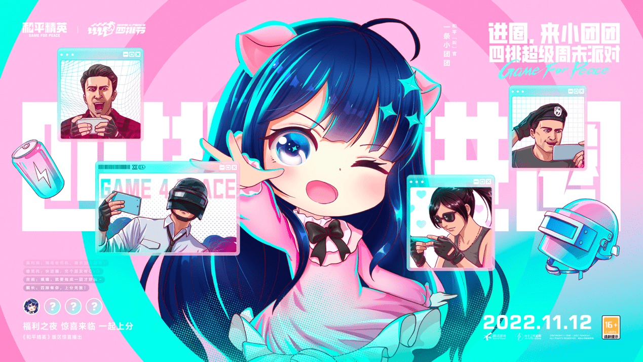 《和平精英》品牌代言人华晨宇、宋茜,人气主播“一条小团团”,百大UP主“逍遥散人”,以及人气歌手希林娜依·高等神秘嘉宾都将会出现在本次的《和平精英》2022四排节限定活动“四排超级周末”中。