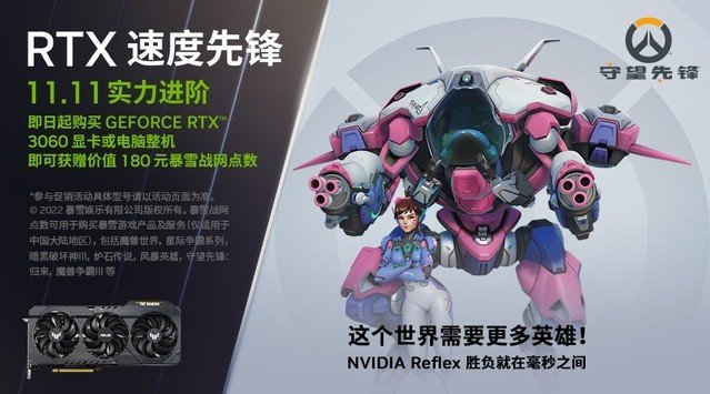 近期,正值双十一购物节,暴雪当然不会缺席~2022年10月31日至11月11日期间,玩家通过华硕品牌指定的店铺购买华硕GEFORCERTX 3060显卡,包含单卡、整机,即可有机会获赠180元暴雪点数!数量有限,先到先得,速速来参与吧~