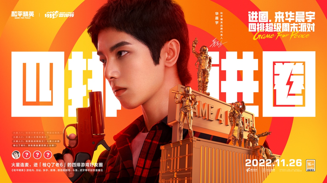 除了常规四排水友赛外,还有特别的“四排超级周末”活动。《和平精英》品牌代言人华晨宇、宋茜,人气主播“一条小团团”,百大UP主“逍遥散人”,以及人气歌手希林娜依·高等神秘嘉宾,将会挨个与广大特种兵肩并肩度过“四排超级周末”。