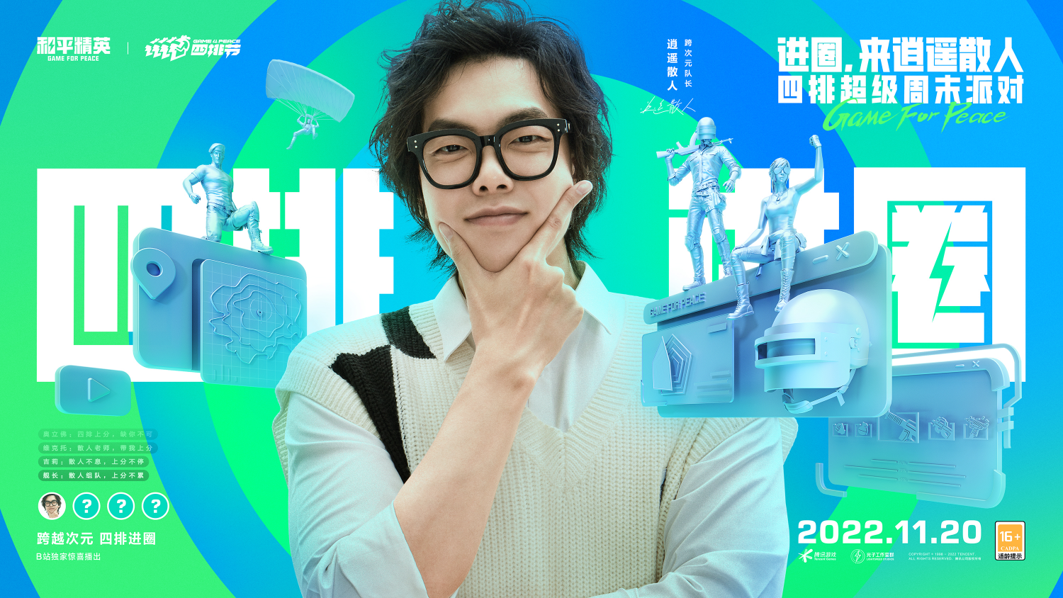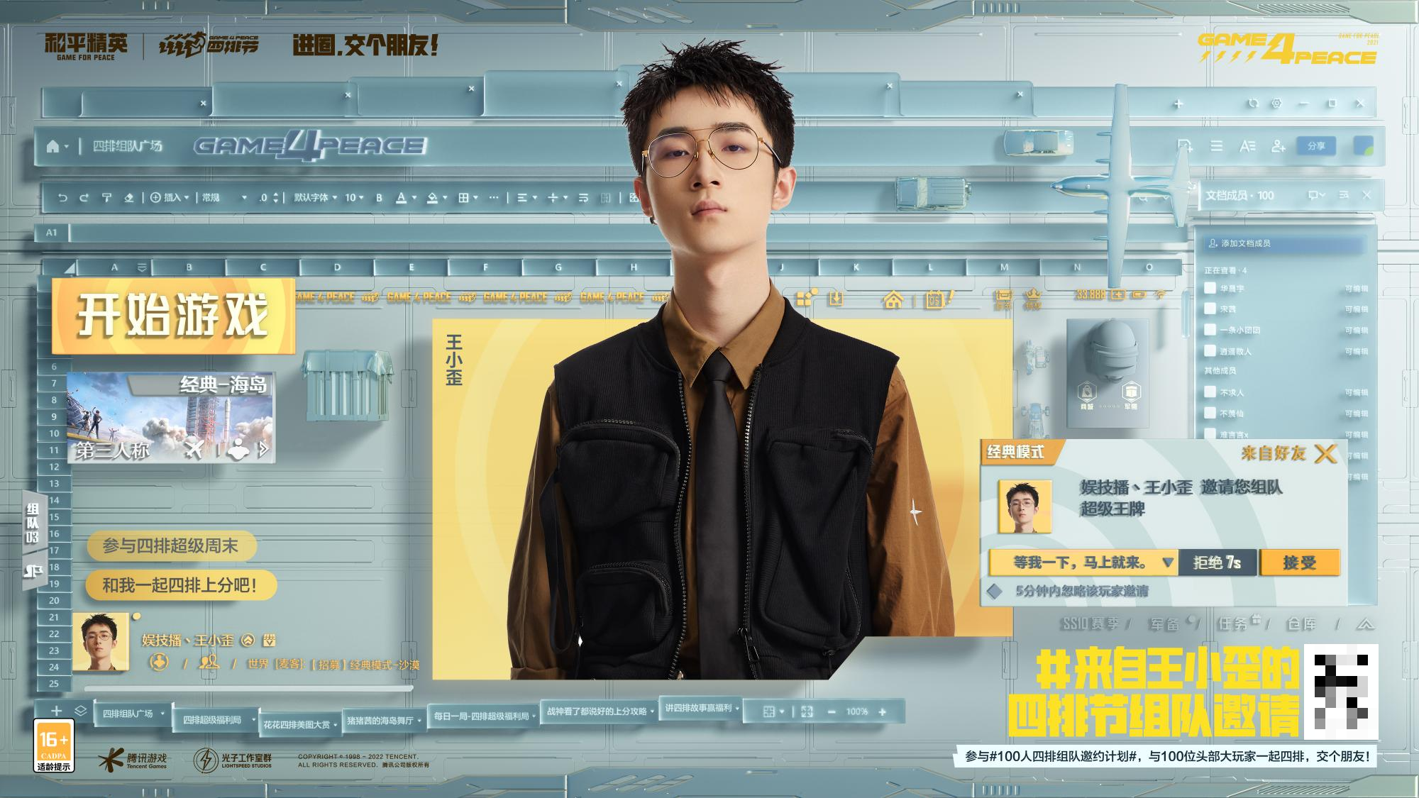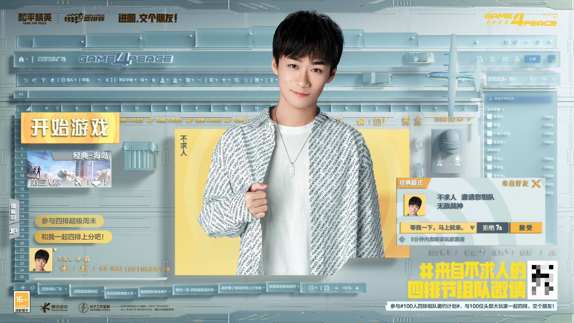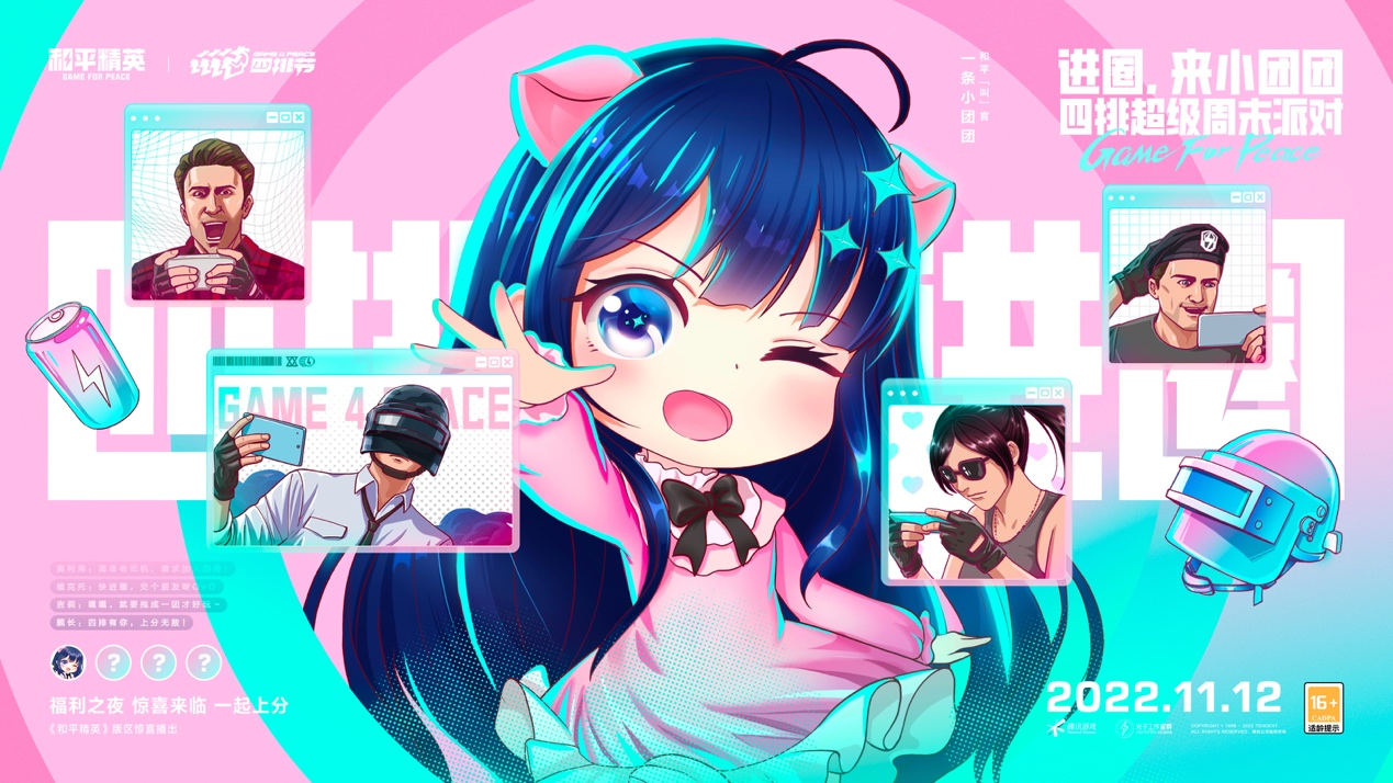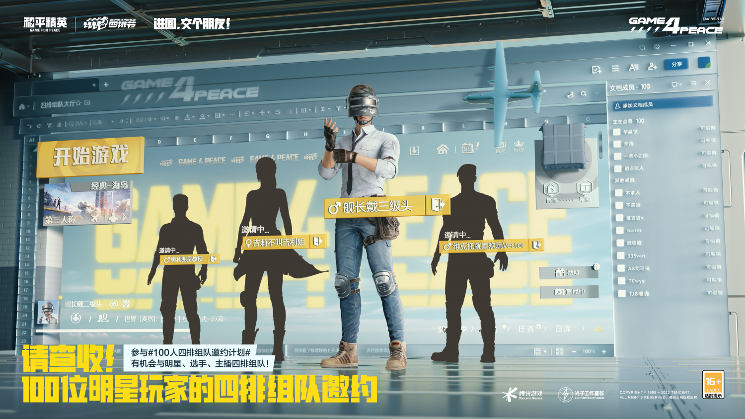这两天,《和平精英》的新闻不断刷屏各大社交媒体,从生态交流会的圆满结束,到第二届和平精英国际主播公开赛的成功落幕,每一个都给特种兵们打上了一针强心剂。上个活动的结束总在预示下个活动的到来,在PSI总决赛现场上,《和平精英》公布了2022年四排节的“100人四排组队邀约计划”,集结100位明星玩家向全体特种兵发出组队邀请。