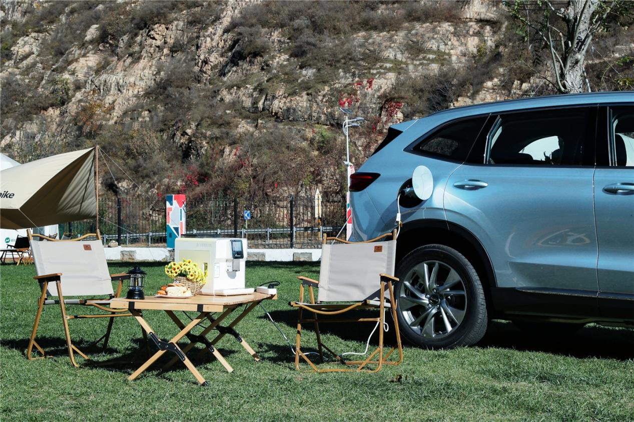 为了充分利用PHEV车型“大电池”的优势,第三代哈弗H6 PHEV还搭载了V2L对外放电技术,通过该模式可将车内的电能直接变成交流电向外输出,车辆立刻化身“超大充电宝”,使用自带的转接设备,可以将这些电能通过普通孔插排,对外部用电器放电。其放电电压为220V家用电压,最大载电能力为3.3kW,可直接为电磁炉、微波炉、手机、便携自助洗车机等电器设备充电,简直是露营必备“神器”。