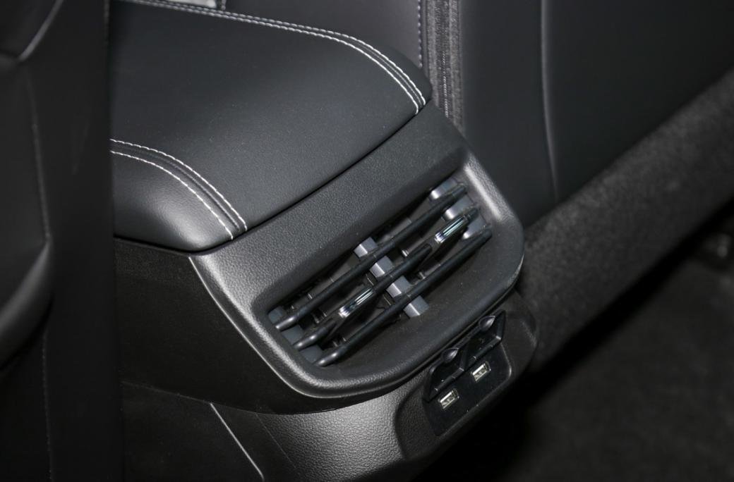 侧面以平直的线条为主,C柱到D柱部分做了线条上扬处理,加上贯穿式腰线和位置稍低的穿线,使得车身更显饱满,看上去要更“显大”。尾部则用上了贯穿式LED灯组,内部构造采用羽翼式设计,后包围采用了隐藏式排气布局。